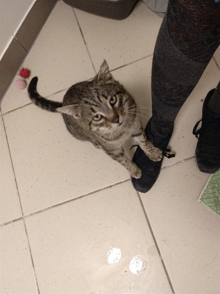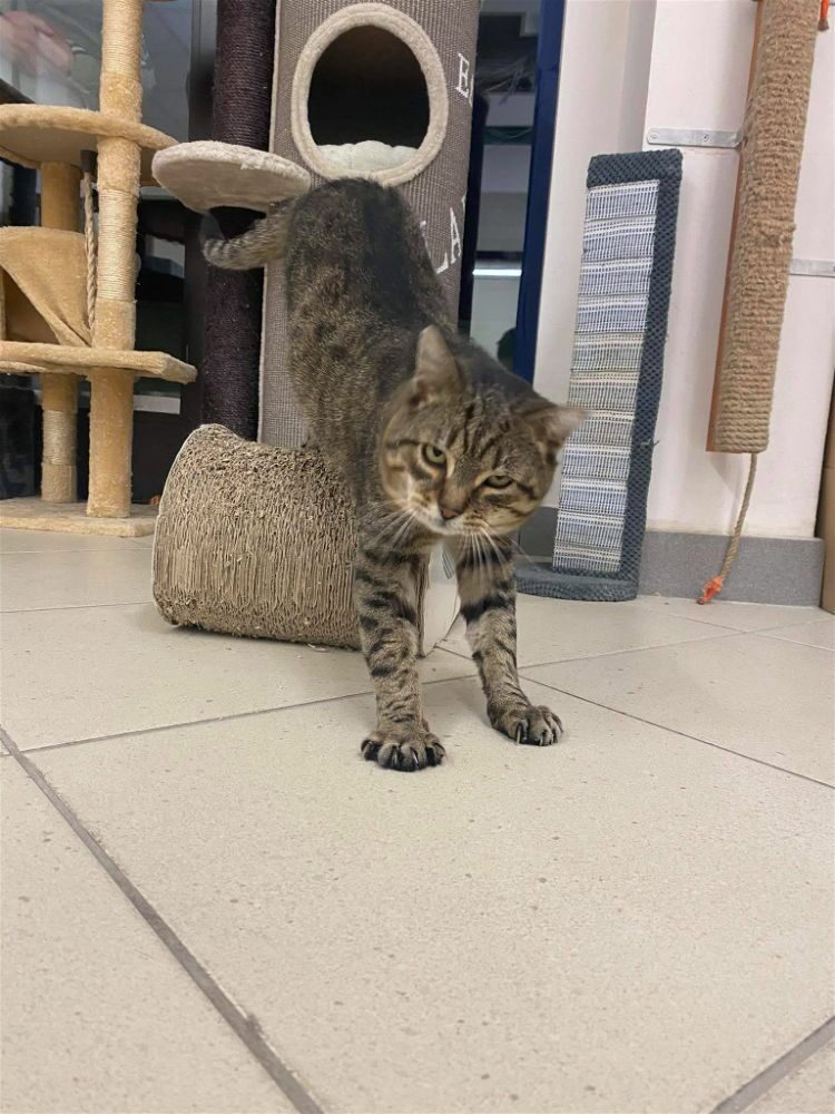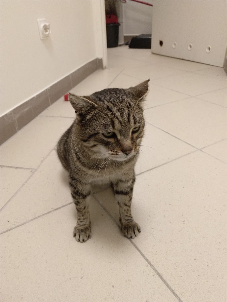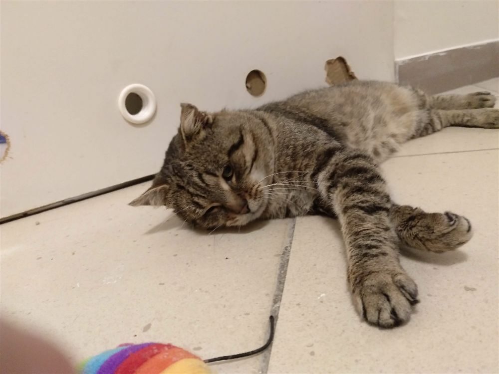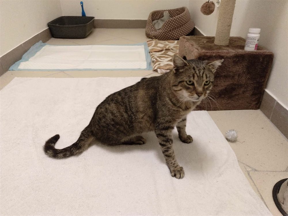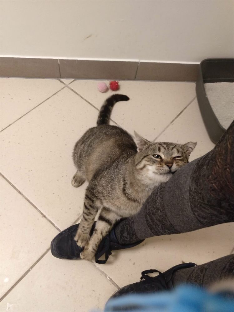 Teraz kociak jest bezpieczny, w ciepłym pokoju z jedzonkiem, głaskankiem i opieką weterynaryjną. Kotek miał problemy z tylnymi łapkami, które częściowo ciągnął za sobą. Występują napady padaczki przy silnym stresie. Mimo to jest przeuroczym miziakiem, mruczy, ugniata, widać że mimo cierpienia jakie mu wyrządzili wciąż kocha ludzi. Bawi się jak małe kociątko. Szukamy mu doświadczonego, niewychodzącego domu, bez dzieci, który szybko zareaguje na ataki padaczki, zaopiekuje się nim do końca, zadba o niego i nie pozwoli wyrządzić mu więcej krzywdy. Inne koty go ignorują lub atakują, dlatego nada się do domu bez zwierząt lub do spokojniego kota.