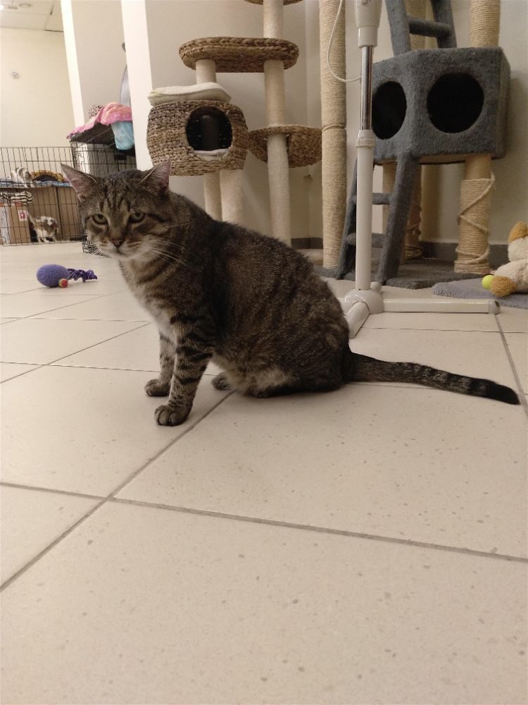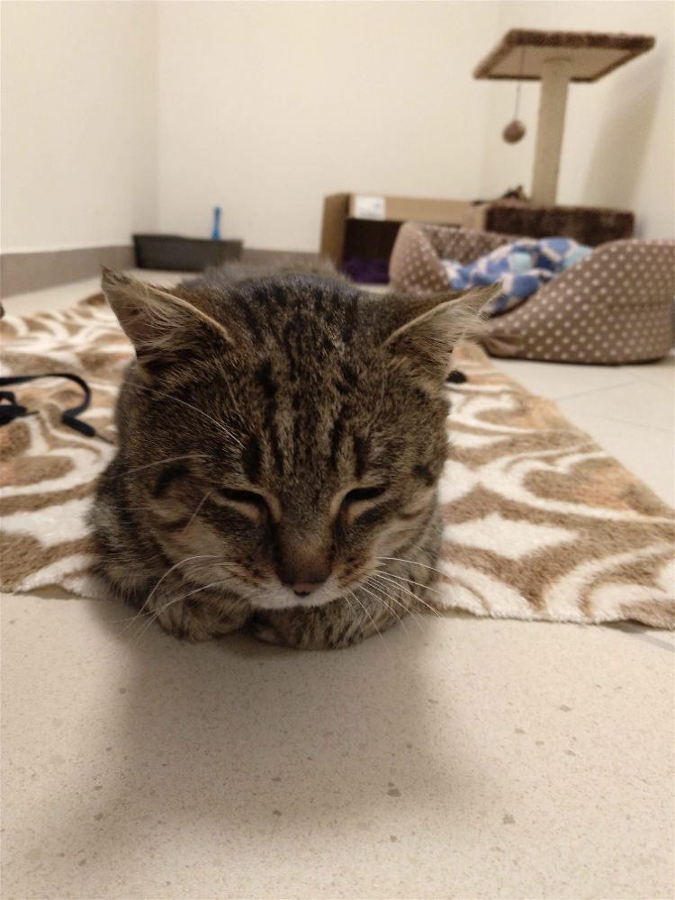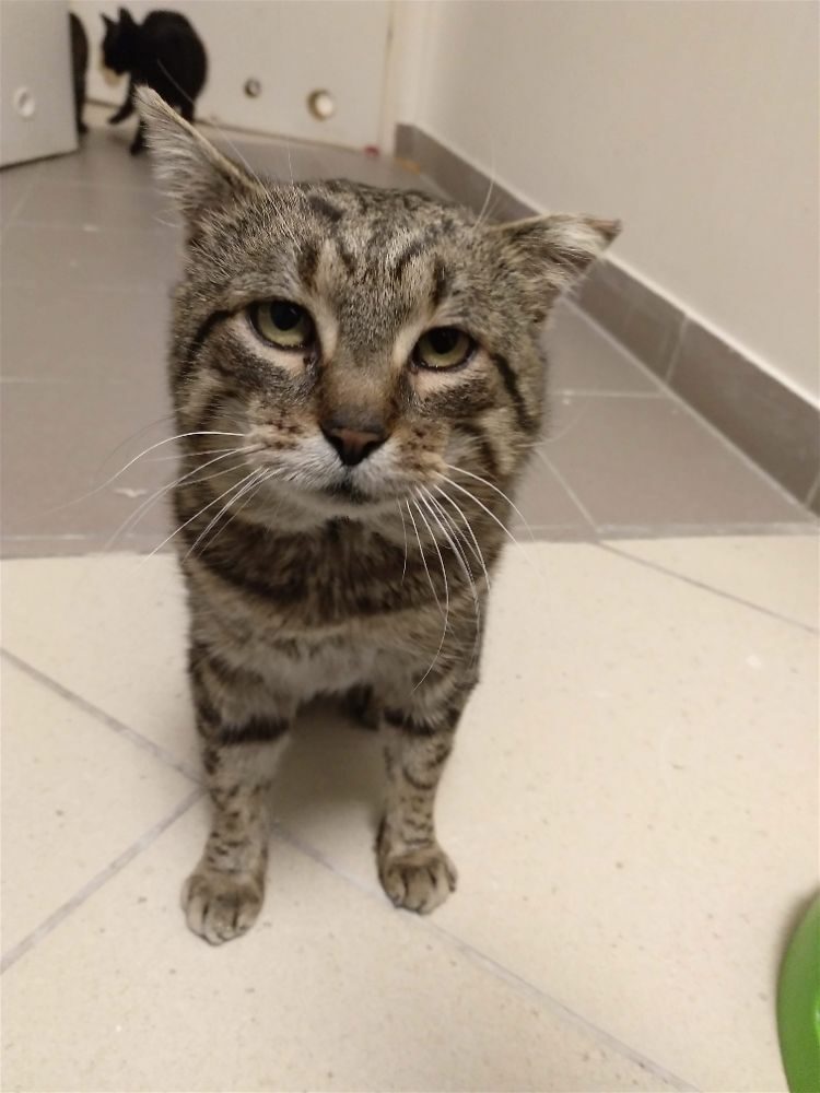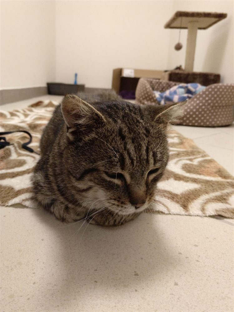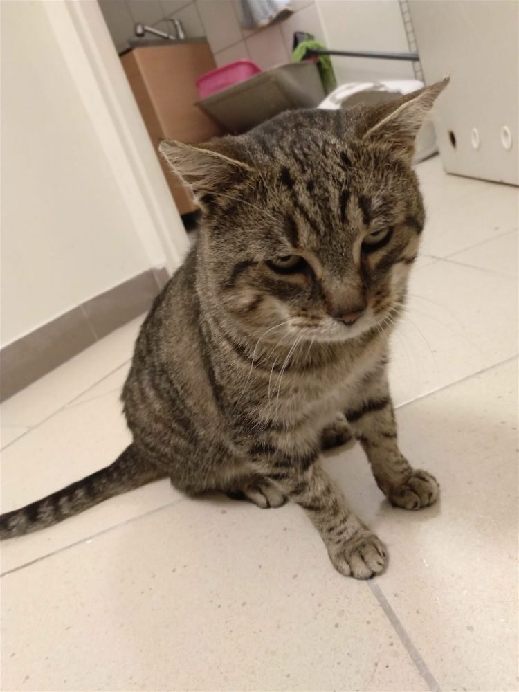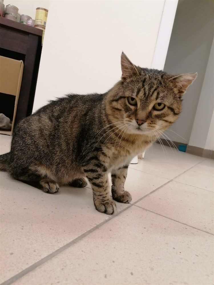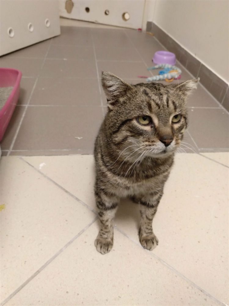 Teraz kociak jest bezpieczny, w ciepłym pokoju z jedzonkiem, głaskankiem i opieką weterynaryjną. Kotek miał problemy z tylnymi łapkami, które częściowo ciągnął za sobą. Występują napady padaczki przy silnym stresie. Mimo to jest przeuroczym miziakiem, mruczy, ugniata, widać że mimo cierpienia jakie mu wyrządzili wciąż kocha ludzi. Bawi się jak małe kociątko. Szukamy mu doświadczonego, niewychodzącego domu, bez dzieci, który szybko zareaguje na ataki padaczki, zaopiekuje się nim do końca, zadba o niego i nie pozwoli wyrządzić mu więcej krzywdy. Inne koty go ignorują lub atakują, dlatego nada się do domu bez zwierząt lub do spokojniego kota.