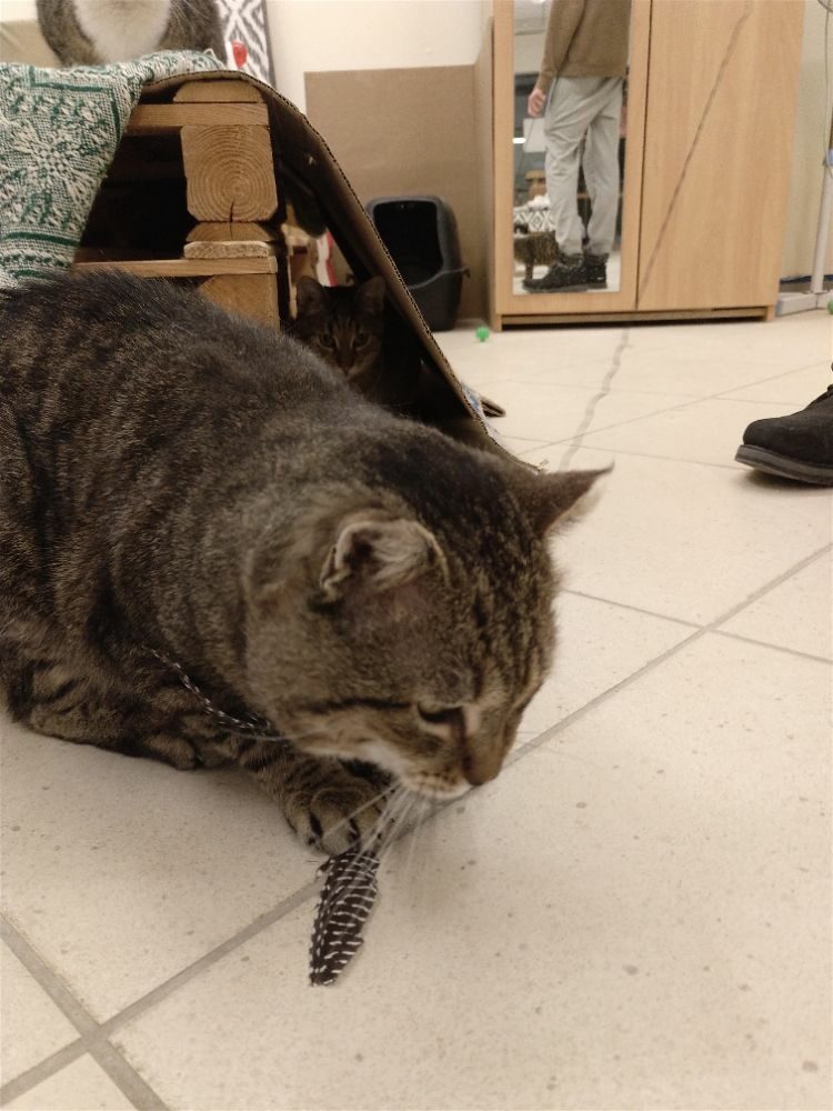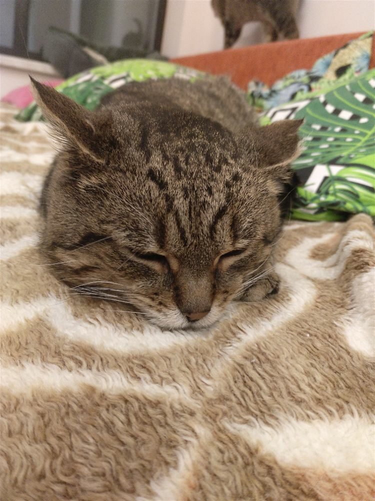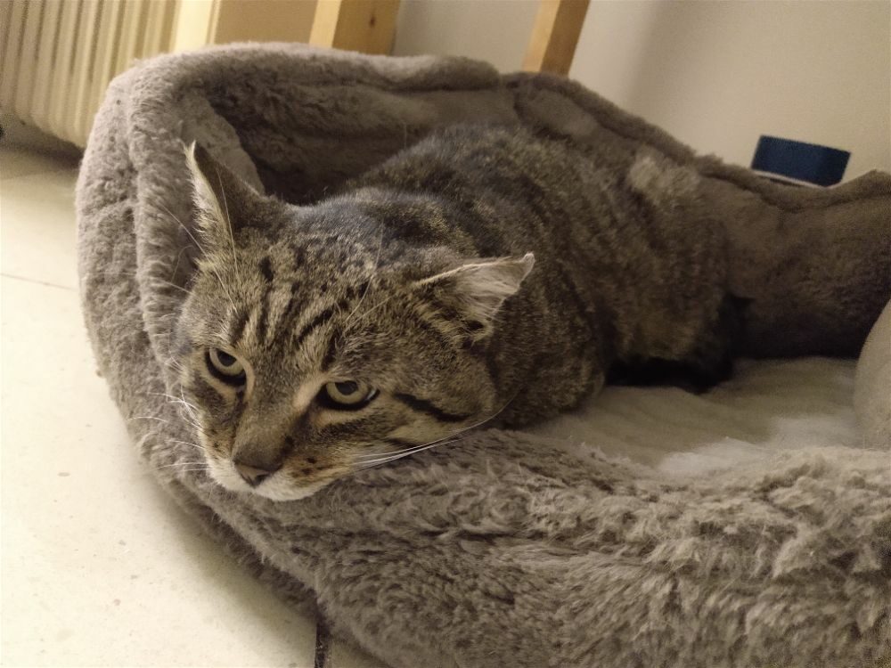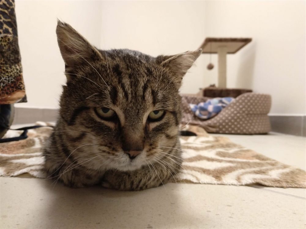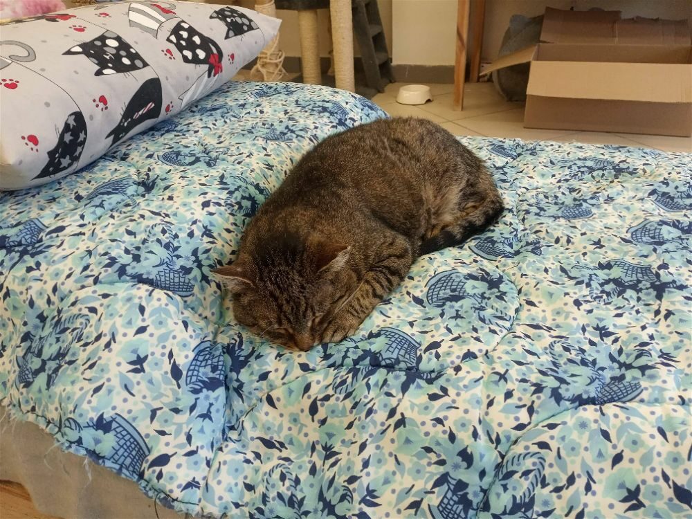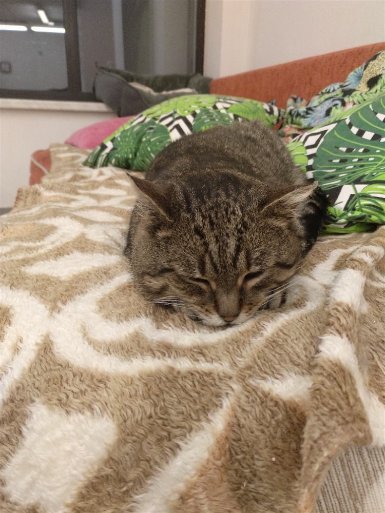 Teraz kociak jest bezpieczny, w ciepłym pokoju z jedzonkiem, głaskankiem i opieką weterynaryjną. Kotek miał problemy z tylnymi łapkami, które częściowo ciągnął za sobą. Występują napady padaczki przy silnym stresie. Mimo to jest przeuroczym miziakiem, mruczy, ugniata, widać że mimo cierpienia jakie mu wyrządzili wciąż kocha ludzi. Bawi się jak małe kociątko. Szukamy mu doświadczonego, niewychodzącego domu, bez dzieci, który szybko zareaguje na ataki padaczki, zaopiekuje się nim do końca, zadba o niego i nie pozwoli wyrządzić mu więcej krzywdy. Inne koty go ignorują lub atakują, dlatego nada się do domu bez zwierząt lub do spokojniego kota.