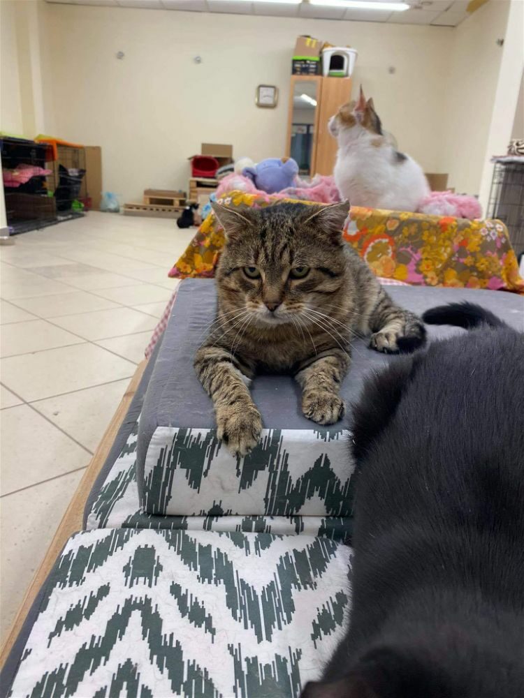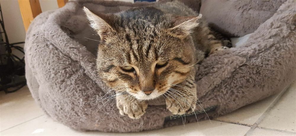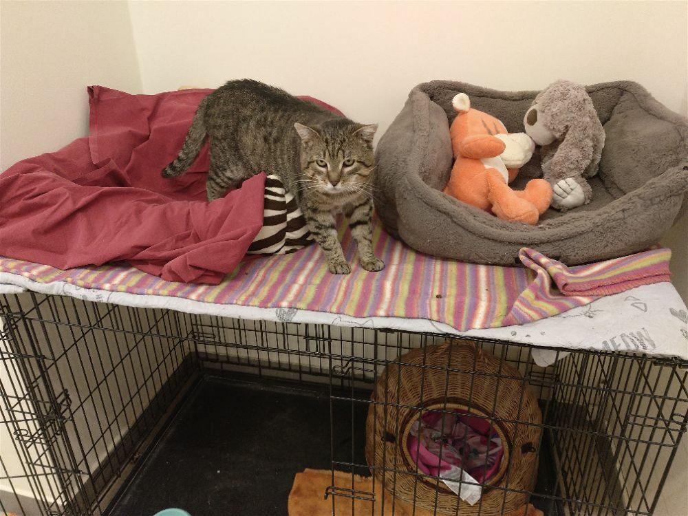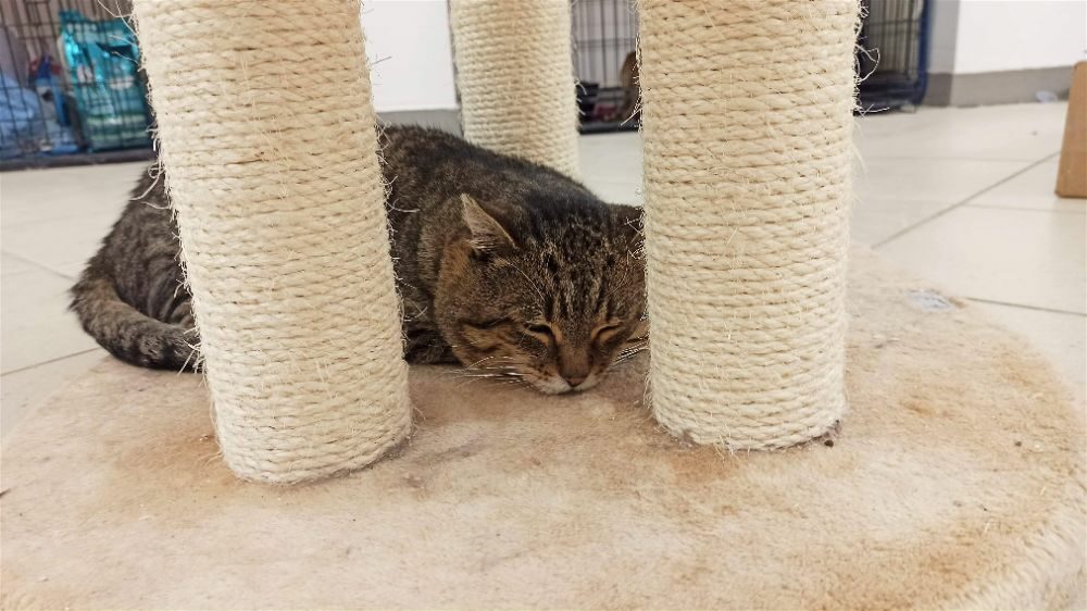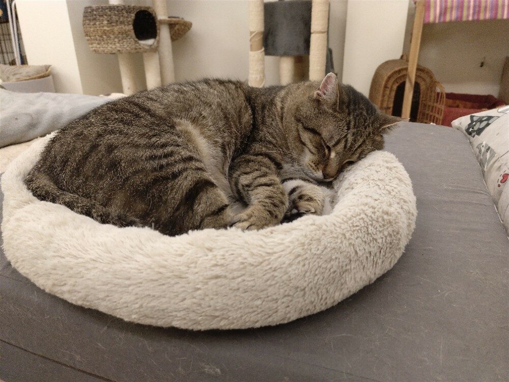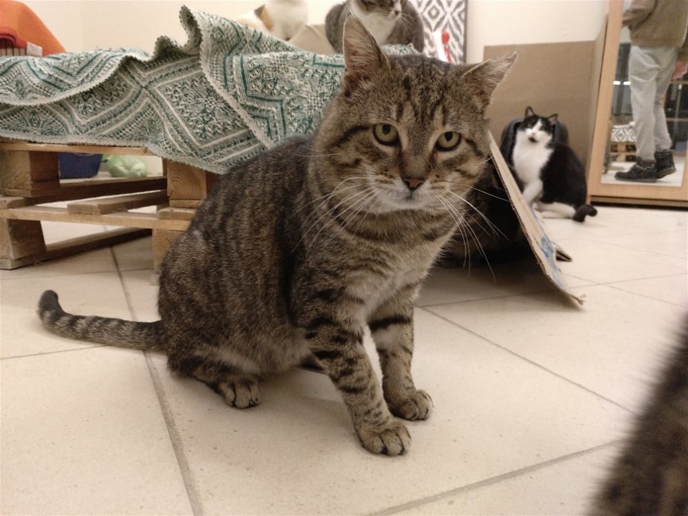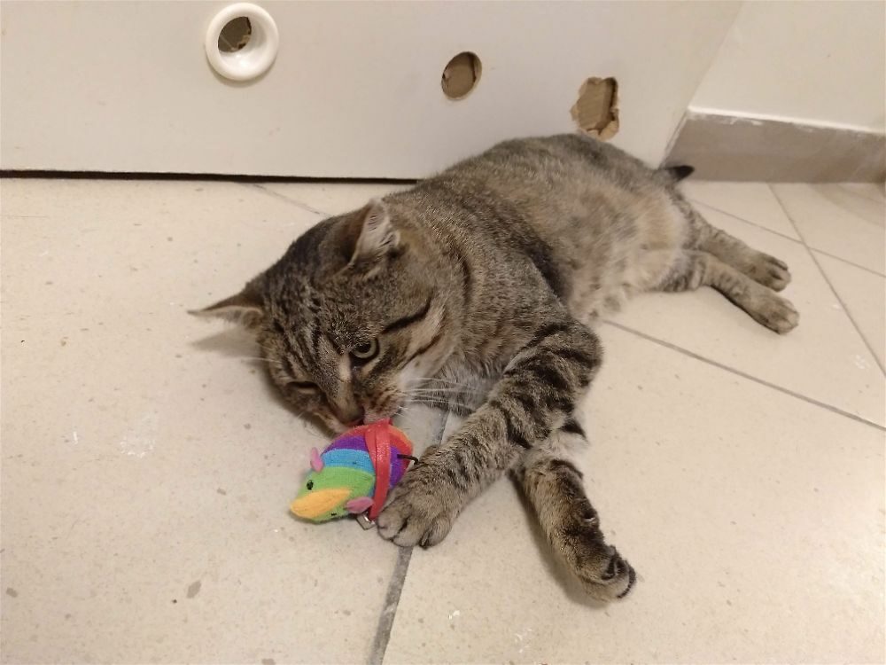 Teraz kociak jest bezpieczny, w ciepłym pokoju z jedzonkiem, głaskankiem i opieką weterynaryjną. Kotek miał problemy z tylnymi łapkami, które częściowo ciągnął za sobą. Występują napady padaczki przy silnym stresie. Mimo to jest przeuroczym miziakiem, mruczy, ugniata, widać że mimo cierpienia jakie mu wyrządzili wciąż kocha ludzi. Bawi się jak małe kociątko. Szukamy mu doświadczonego, niewychodzącego domu, bez dzieci, który szybko zareaguje na ataki padaczki, zaopiekuje się nim do końca, zadba o niego i nie pozwoli wyrządzić mu więcej krzywdy. Inne koty go ignorują lub atakują, dlatego nada się do domu bez zwierząt lub do spokojniego kota.