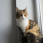 Kotka przyszła prosić nas o jedzenie, w chłodne dni dała się zaprosić do środka, gdzie mogła się zagrzać. Toleruje inne koty.