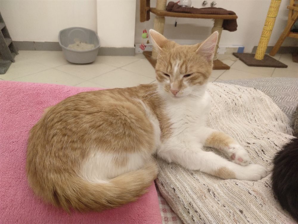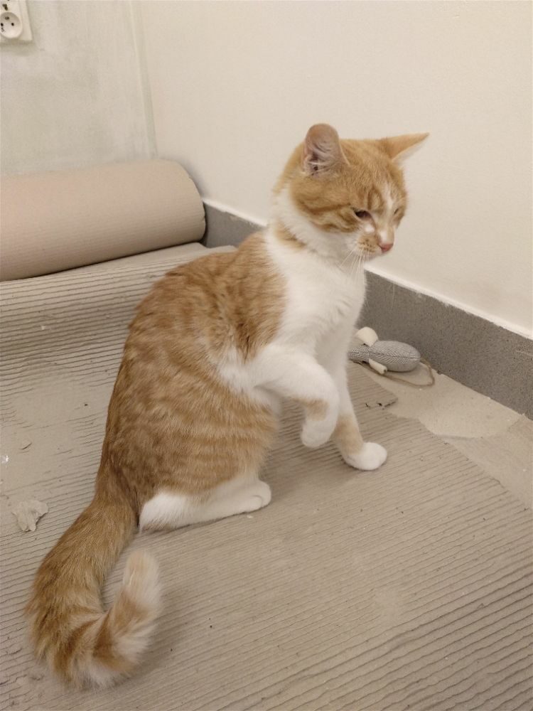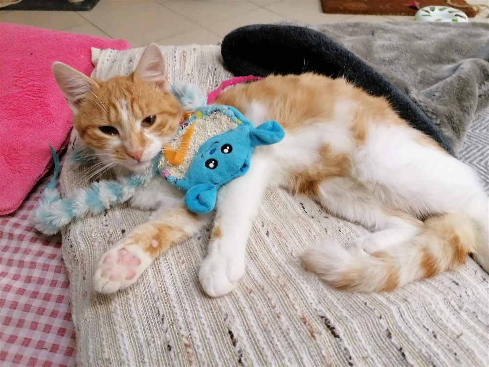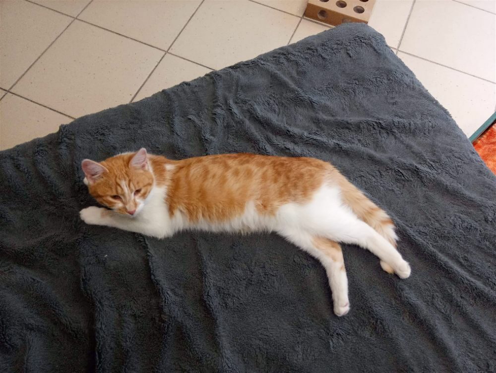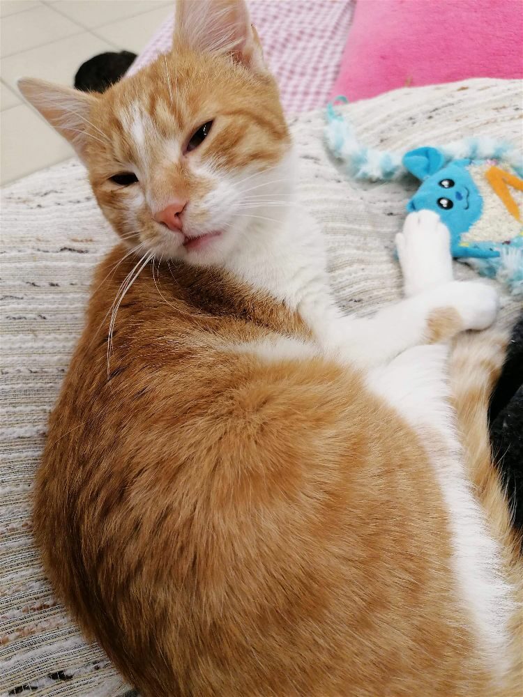 Korko trafił do nas z działek w Stalowej Woli, gdzie prawdopodobnie został wcześniej porzucony. Kocurek był przeganiany przez inne koty i kopany przez ludzi przez długie miesiące.