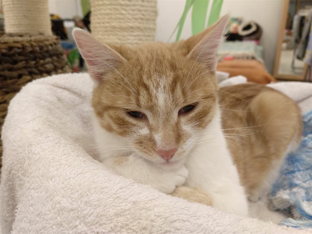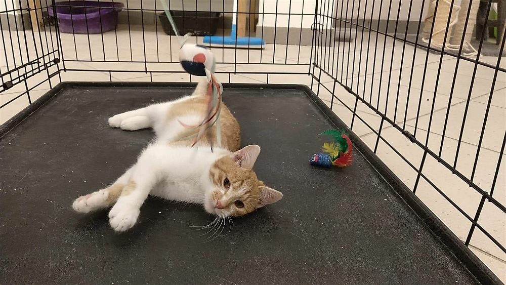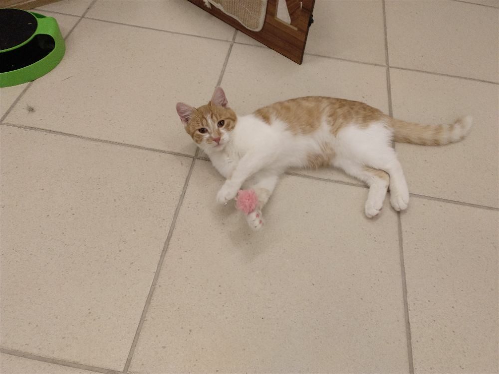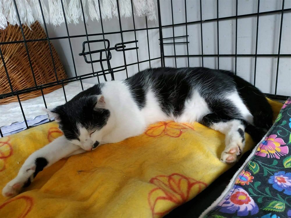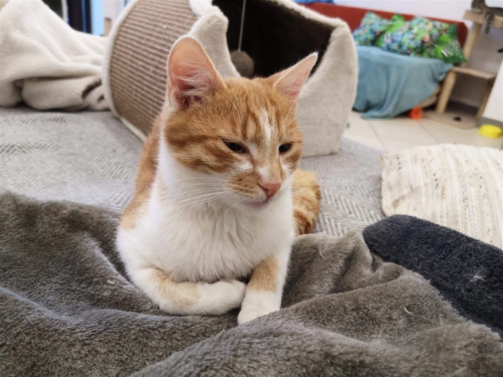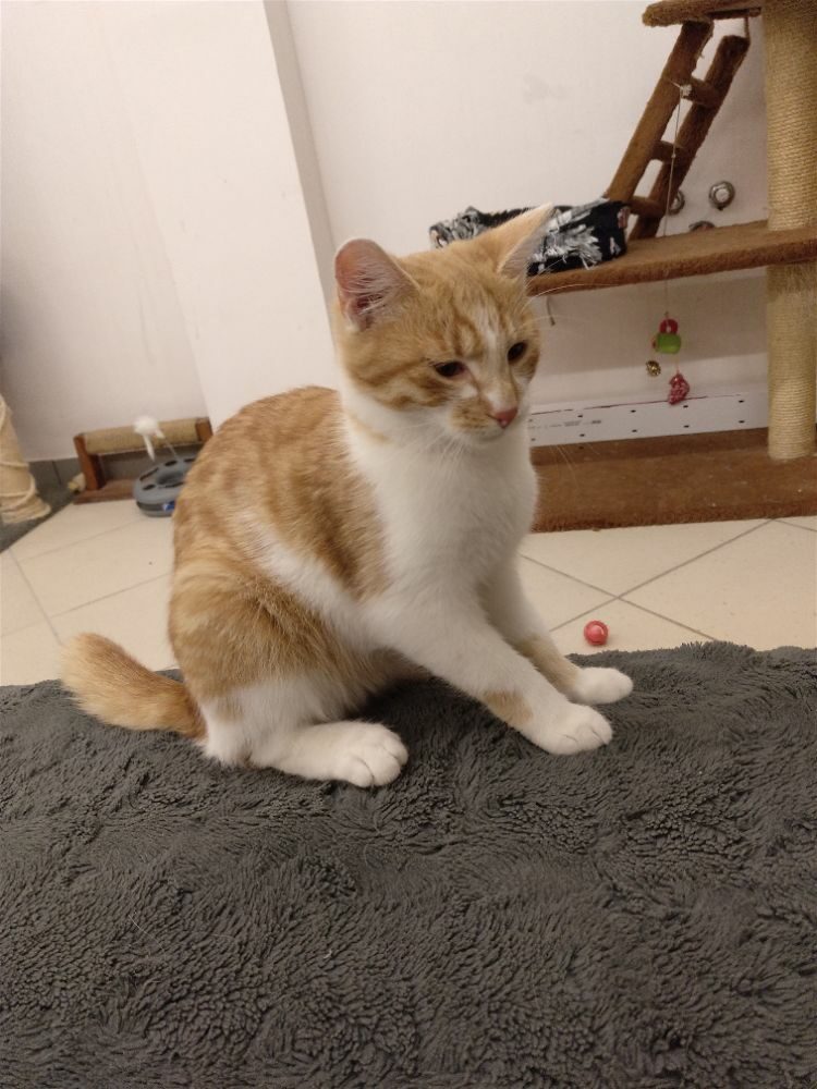Korko trafił do nas z działek w Stalowej Woli, gdzie prawdopodobnie został wcześniej porzucony. Kocurek był przeganiany przez inne koty i kopany przez ludzi przez długie miesiące.