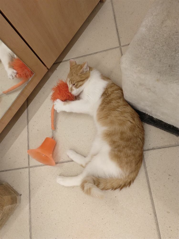Idealnie nadaje się jako koci jedynak, gdyż zdecydowanie woli towarzystwo ludzi niż innych kotów (ewentualnie do domu z małym kociakiem… tatusiuje naszej małej Fince).