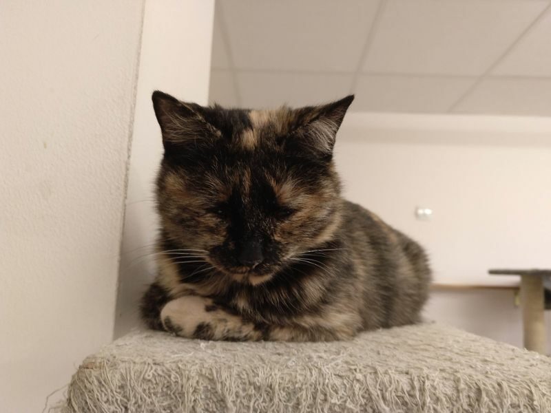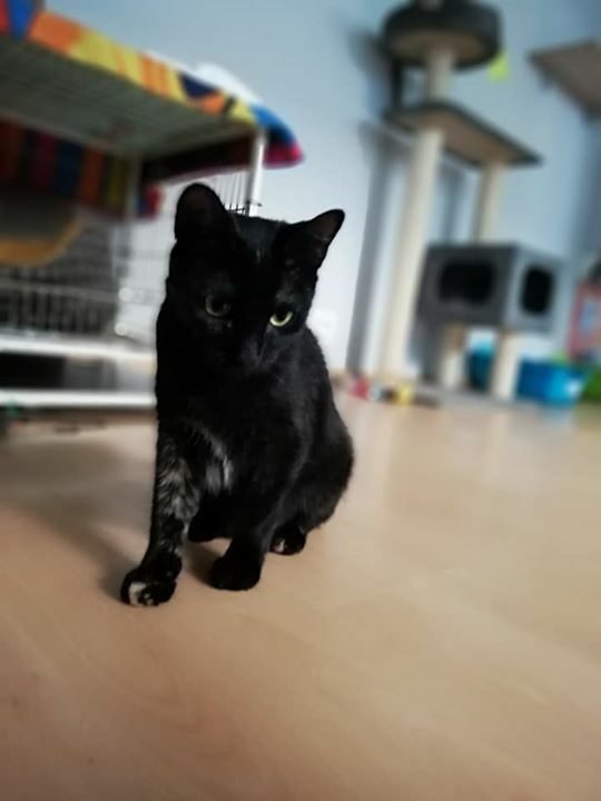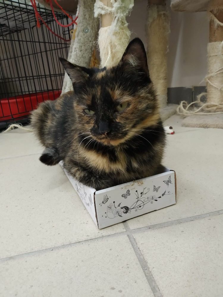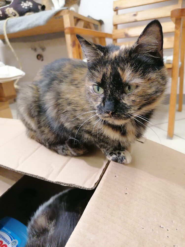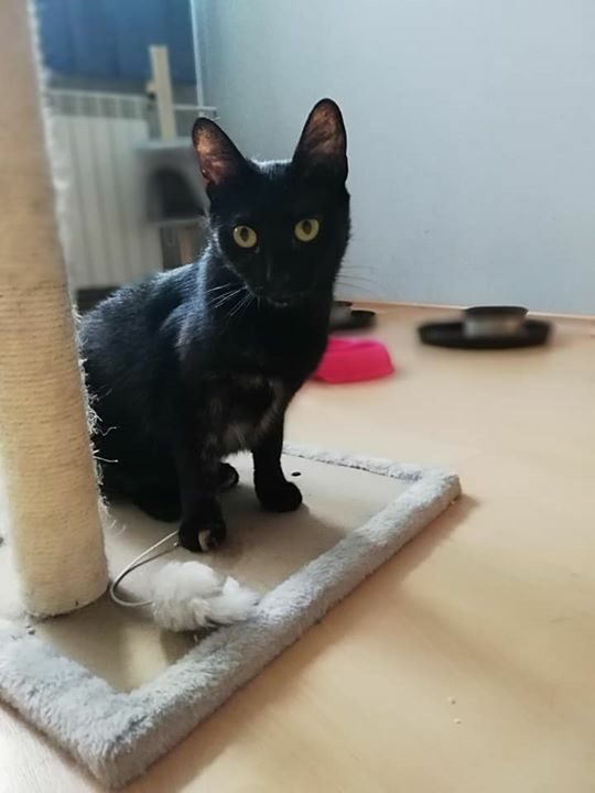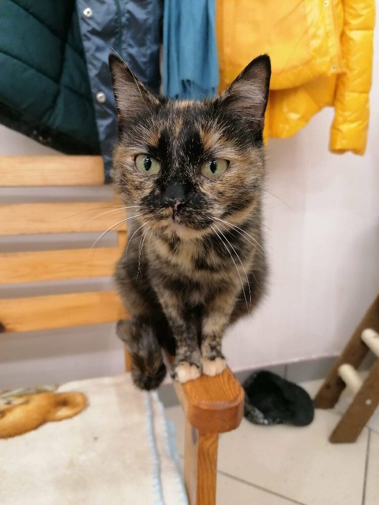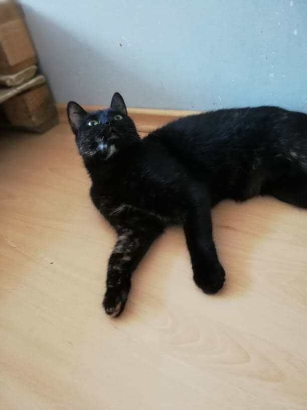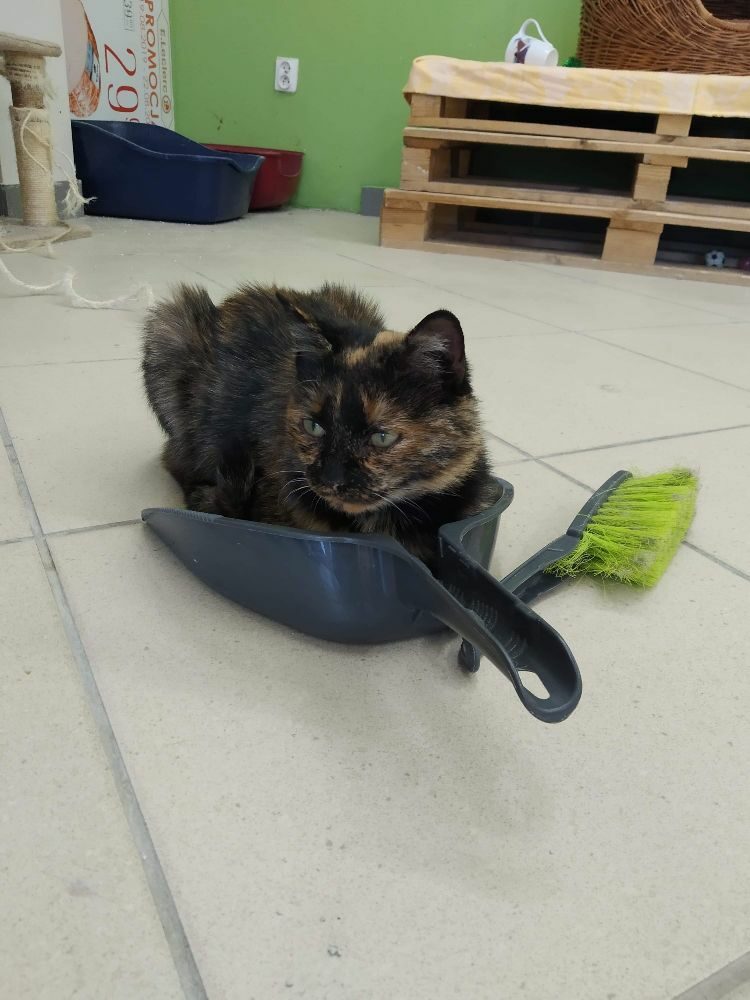Kotka długo szwendała się po ulicach nim została zauważona. Gdy trafiła do ciepłego miejsca, gdzie dostała jedzonko, zmęczona od razu usnęła, by odespać tułaczkę. Kotka jest bardzo miła i przyjacielska.