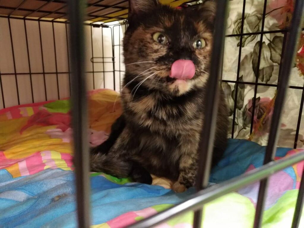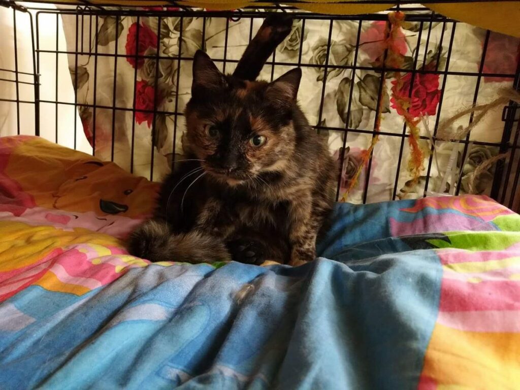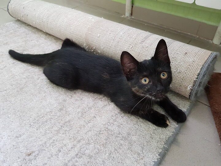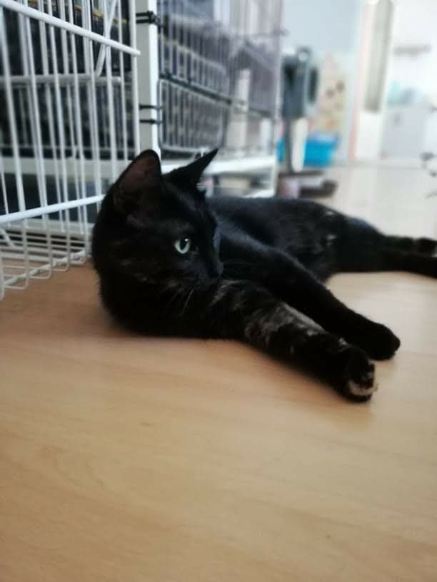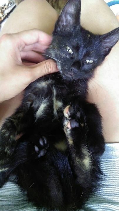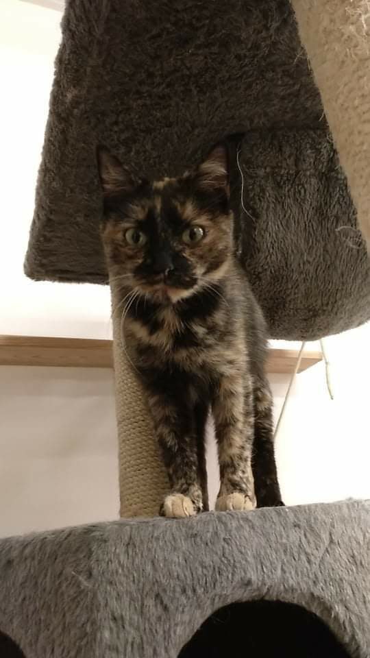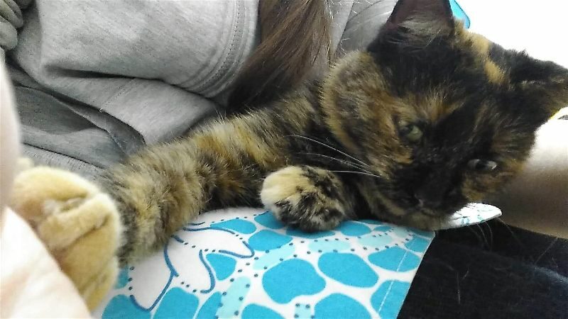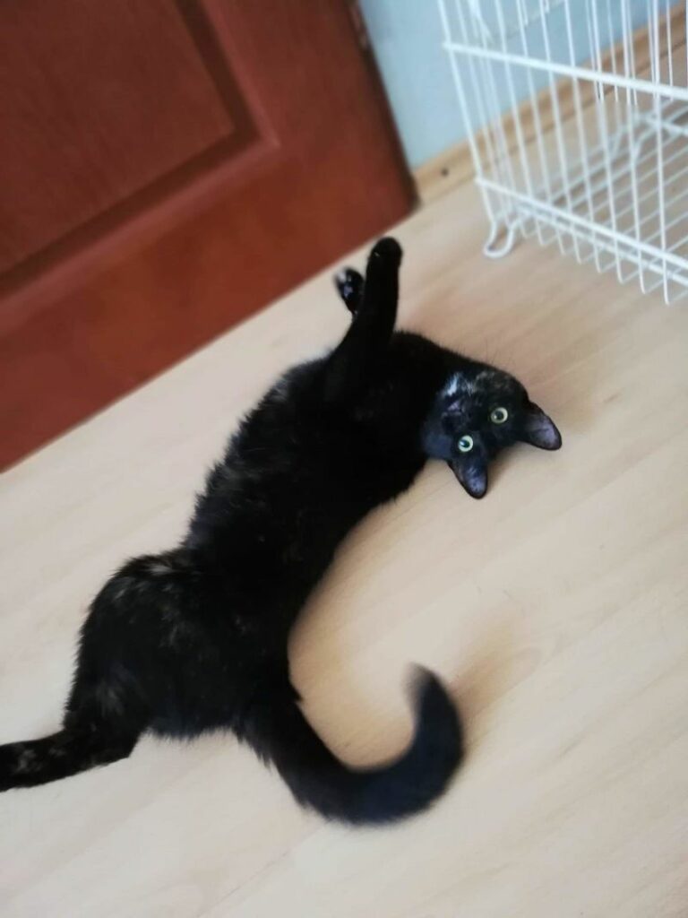 Kotka długo szwendała się po ulicach nim została zauważona. Gdy trafiła do ciepłego miejsca, gdzie dostała jedzonko, zmęczona od razu usnęła, by odespać tułaczkę. Kotka jest bardzo miła i przyjacielska.