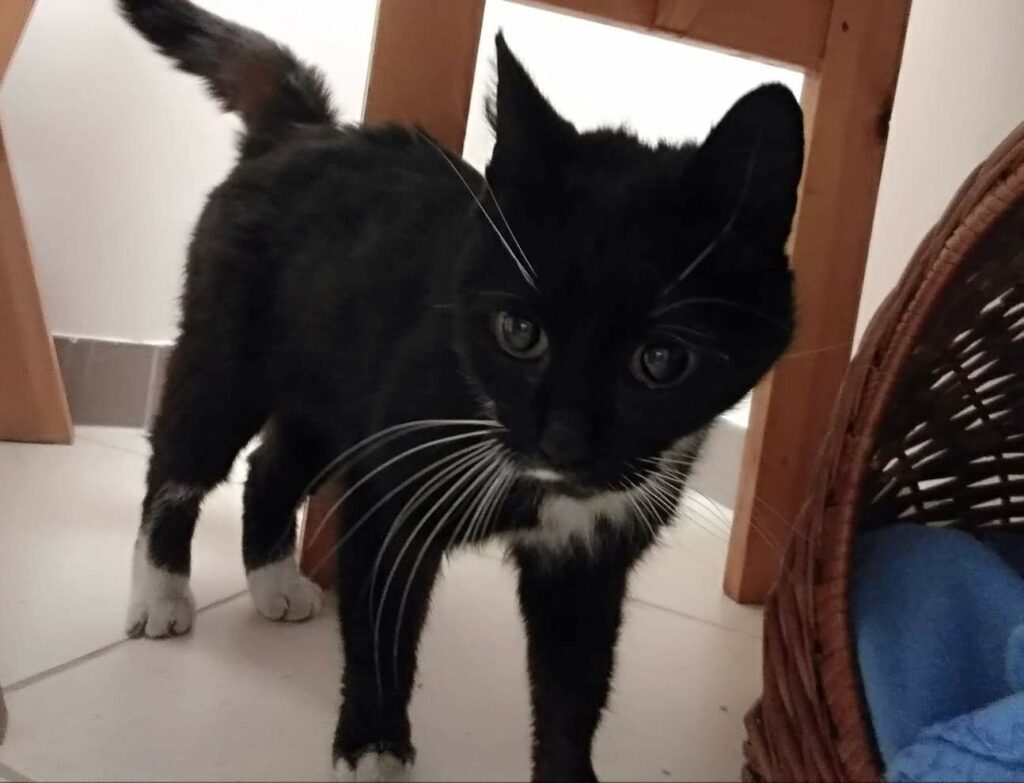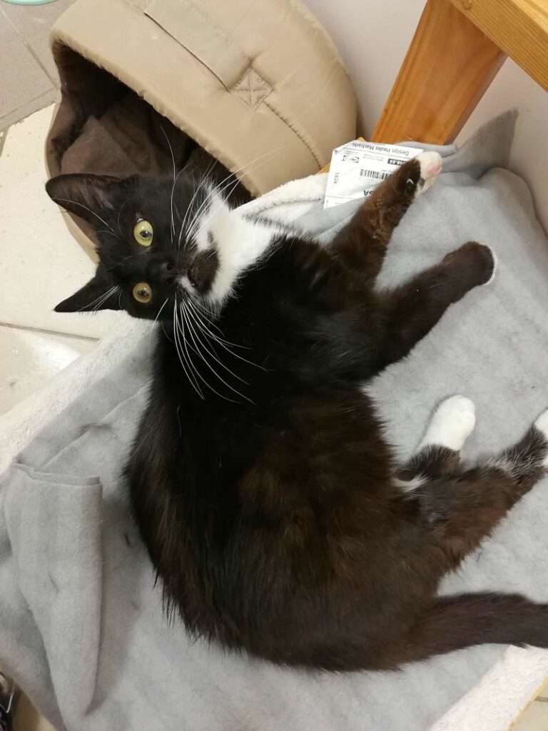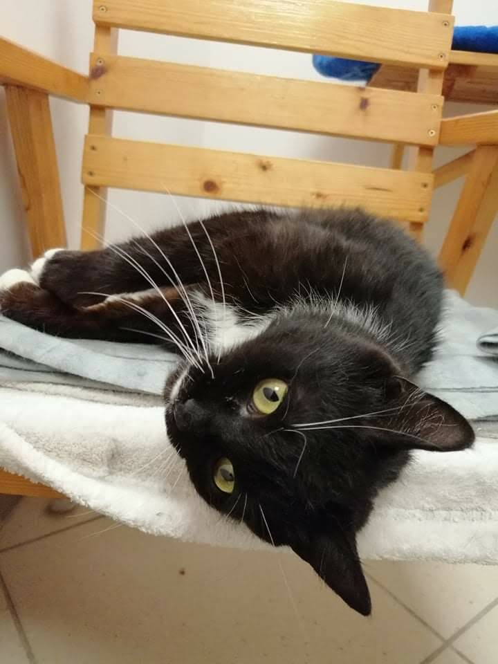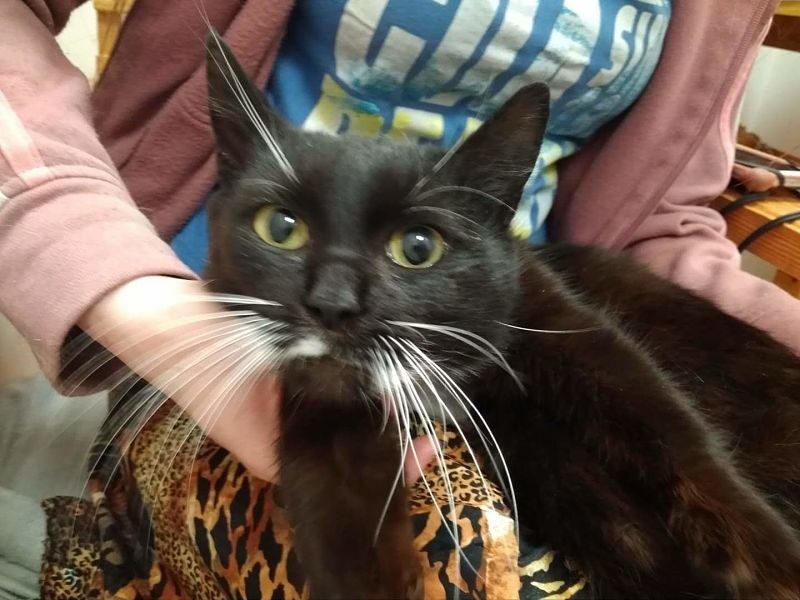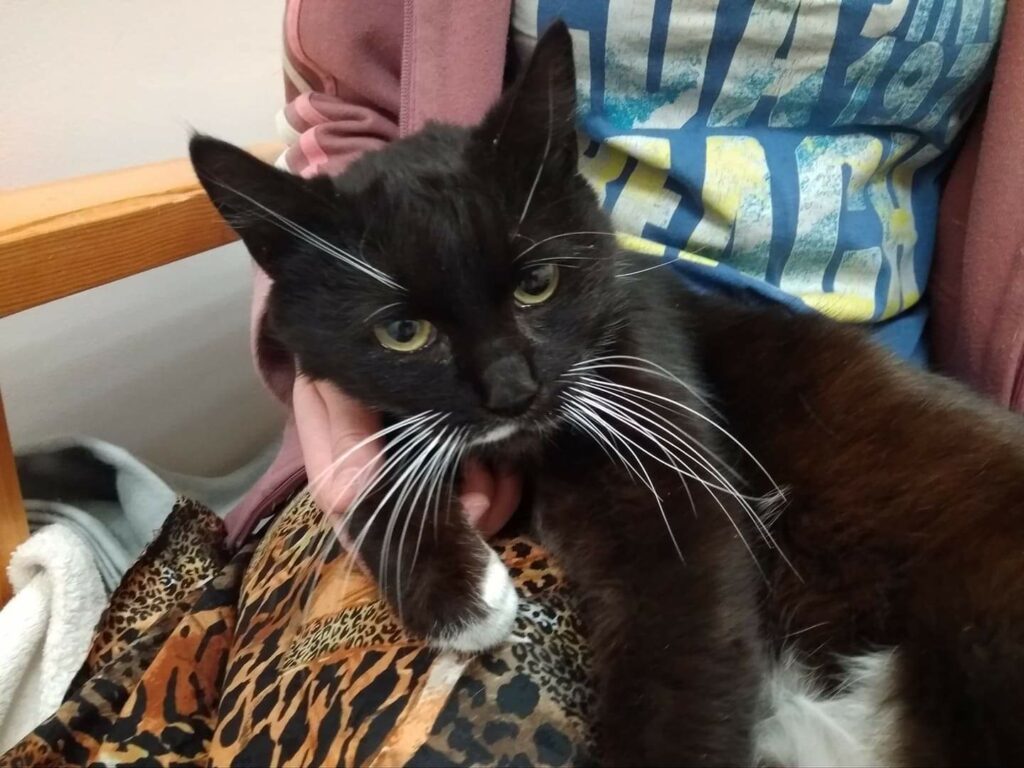 Kotka przybłąkała się do nas z kocim katarem. Jest przyjazna, mizia się do wszystkich, uwielbia siedzieć na kolanach i wtulać się.
