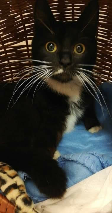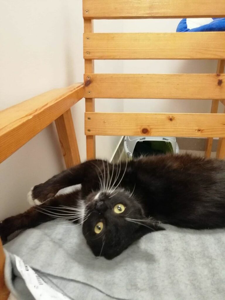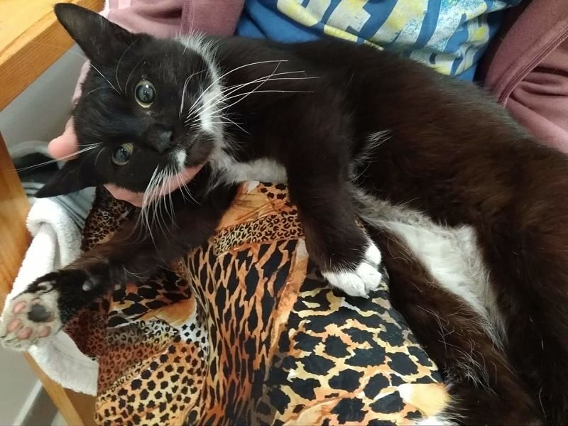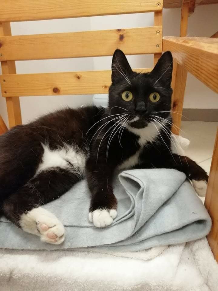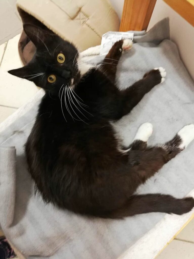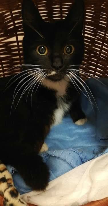 Kotka przybłąkała się do nas z kocim katarem. Jest przyjazna, mizia się do wszystkich, uwielbia siedzieć na kolanach i wtulać się.