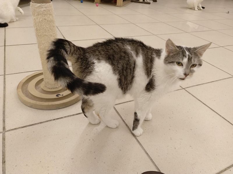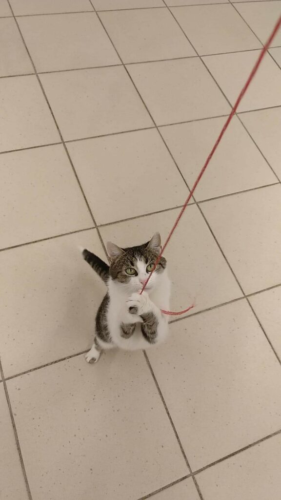 Jest bardzo przyjazny w stosunku do człowieka… czasami wręcz trudno się od niego odgonić. Inne koty lubi w zabawie zaczepiać, co one nie zawsze uwielbiają 🙂