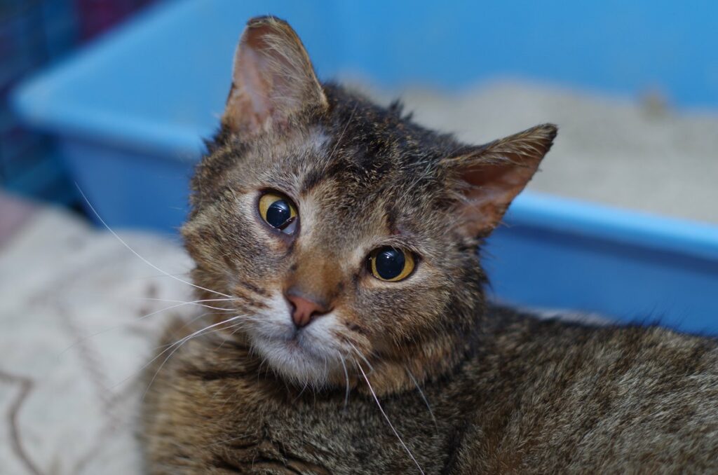 Jedno jej oczko jest zamglone, co najprawdopodobniej jest wynikiem przebytego kociego kataru.
