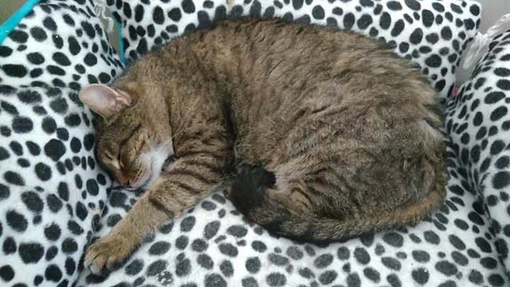 Został zabrany do weterynarza i udzielona mu została pierwsza pomoc. Początkowo był w tak złym stanie, że nie było możliwości wykonania podstawowych badań i prześwietlenia.