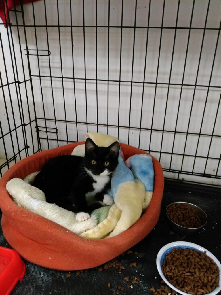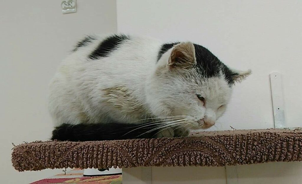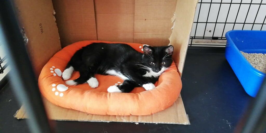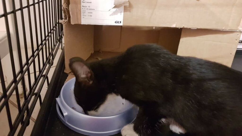 Otrzymaliśmy zgłoszenie o bardzo ciężko rannym kotku, widzianym na jednym ze stalowowolskich osiedli domków jednorodzinnych. Kocurek wył z bólu, błagając o pomoc, lecz był już tak głodny, odwodniony i wyziębiony, że nie miał siły dalej się przemieszczać. Z jego tylnej łapki ciekła ropa, a zapach jaki czuć było już z dużej odległości, świadczył że stan jest bardzo bardzo zły. Ropek został odłowiony i wstępnie opatrzony. Było jednak jasne, że łapki nie da się uratować, a za to trzymaliśmy mocno kciuki, aby nie wdała się sepsa.
