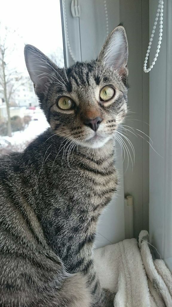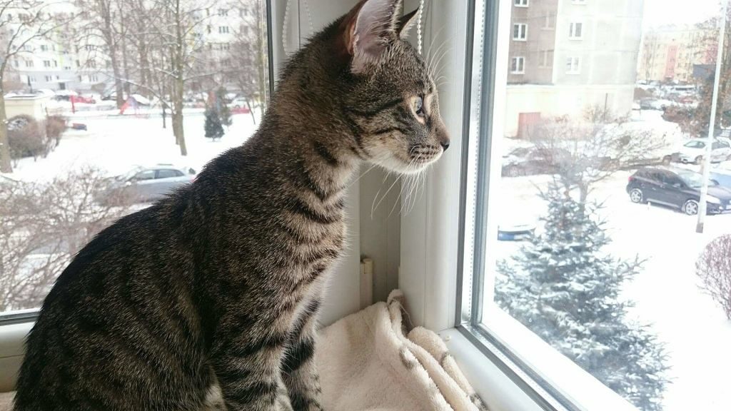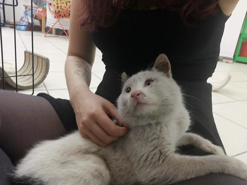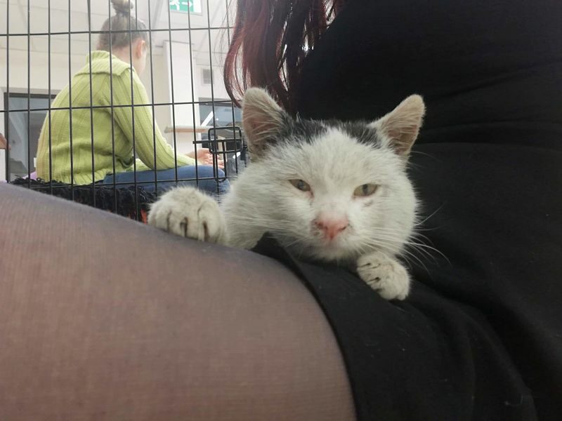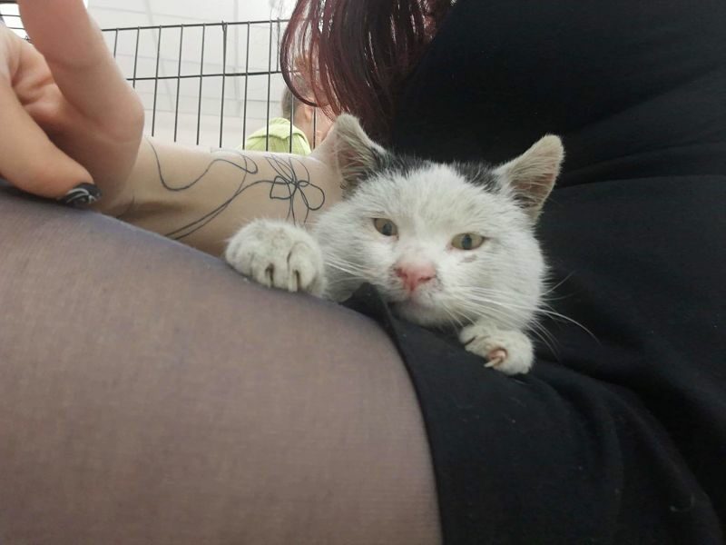 Kotek został znaleziony w zimie. Biedny, wychudzony chodził za ludźmi i szukał uwagi.
