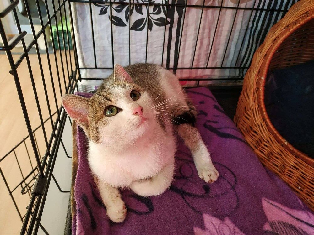 Zaskoczyło nas jak spokojnie reaguje na kennel i inne koty wkoło. Rzadko kiedy koty są zachwycone tuż po przybyciu do kociarni.