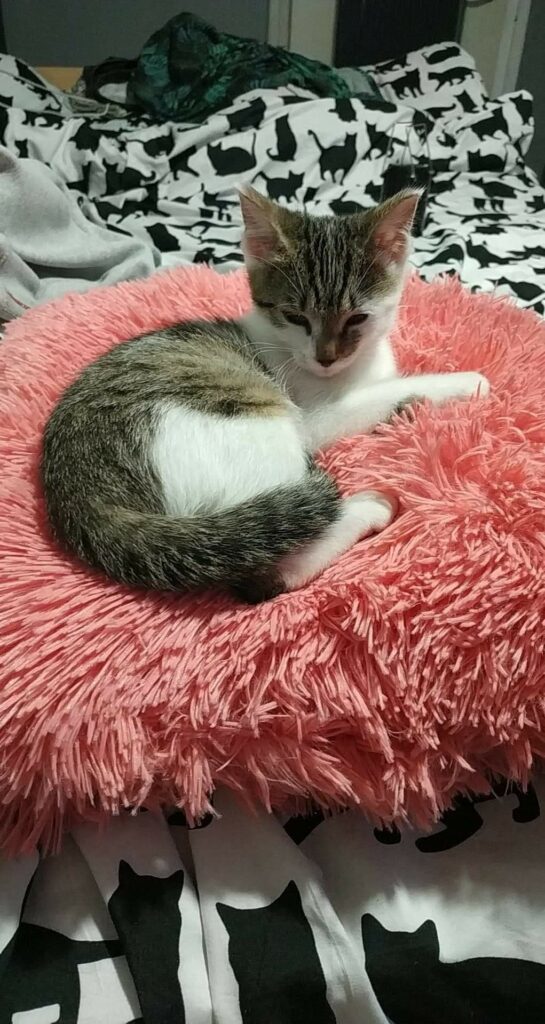 Ta kruszynka została najprawdopodobniej odebrana od mamy i porzucona na jednym z osiedli. Maluch trafił do domu tymczasowego, lecz jest tam bardzo atakowany przez kotkę rezydentkę. Pilnie szukamy mu domu tymczasowego. Najlepiej z innymi kotami, lubiącymi maluchy.