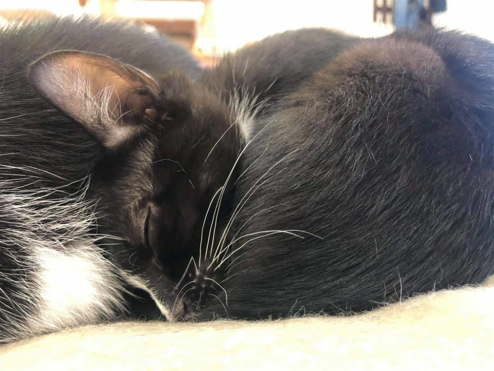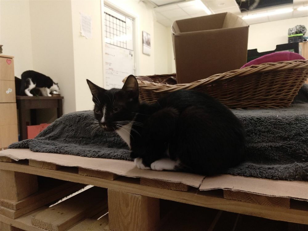 Rambinia jest już pod opieką fundacji od kilku lat. Kotka w wieku około 4 miesięcy została zabrana w największe mrozy z ogródków działkowych. Początkowo myśleliśmy, że jest kocurkiem i otrzymała imię Rambo 😉 Rambinia nigdy nie oswoiła się się do końca, jest kotkiem płochliwym, ale lubi towarzystwo człowieka. Zawsze cieszy się na nasz widok, ugniata podłogę, a przy jedzeniu mruczy i daje się wygłaskać. Jest łagodnym kotem, który w cierpliwym i spokojnym domu czułby się najlepiej.