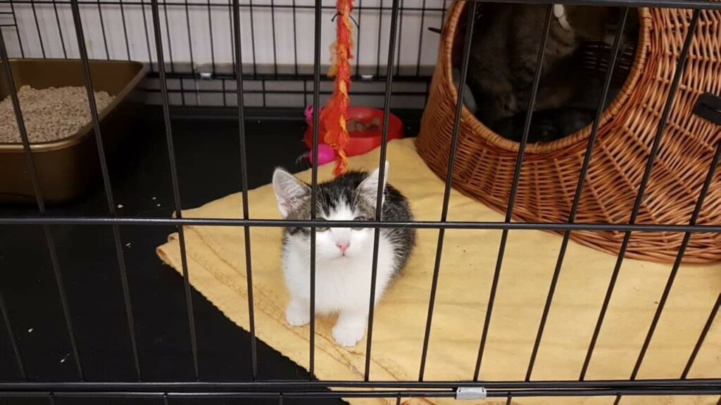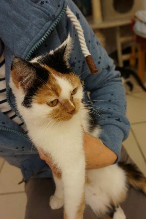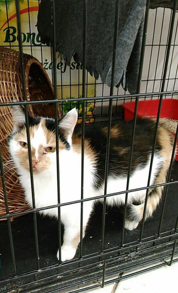 Dumka jest kotką, która trafiła do nas w strasznym stanie. Jej pyszczek był jedną wielką raną, po czym do dziś pozostały ślady. Mimo bólu i cierpienia, jakie przeszła, a także długich tygodni spędzonych w klatce w lecznicy, zachowała radość życia i ogromną sympatię do ludzi. Będzie wspaniałą przyjaciółką na długie lata. Jest już całkowicie zdrowa i wysterylizowana. Może dzielić dom z innym kotem lub być kocią jedynaczką.