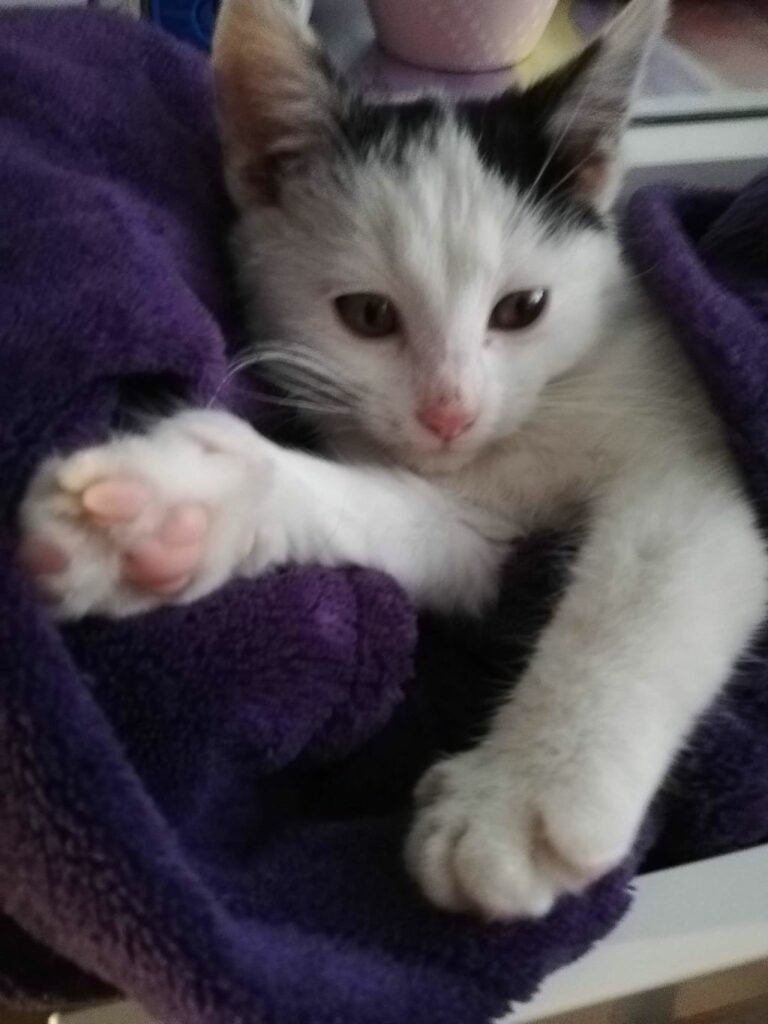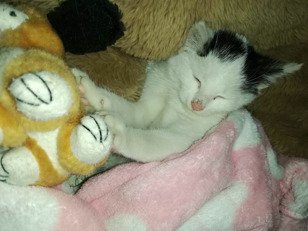 Mimi jest bardzo drobna. Mimo, że ma już około pół roku, wygląda na 3-miesięcznego kociaka. Uwielbia zabawy, kocha surowe mięso (i to jest jedyny moment kiedy ten anioł zamienia się w potwora)… i co dla wielu potencjalnych adoptujących może okazać się ważne – Mimi kocha dzieci