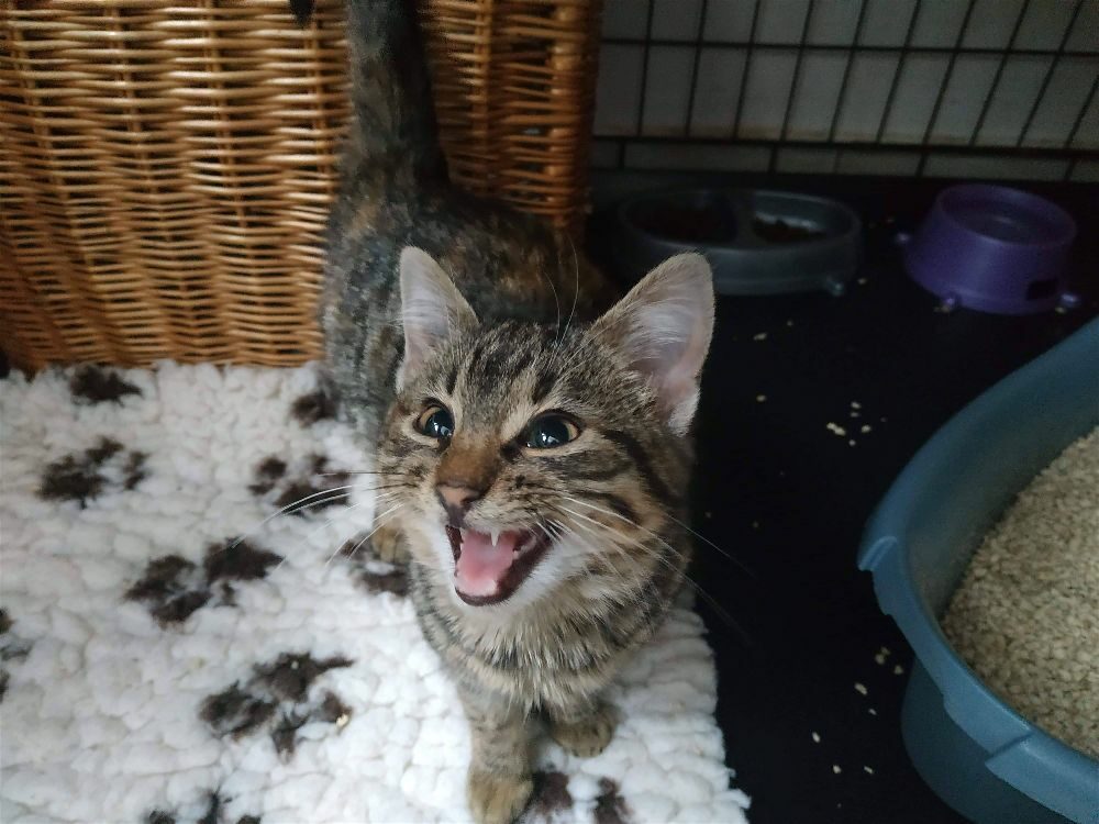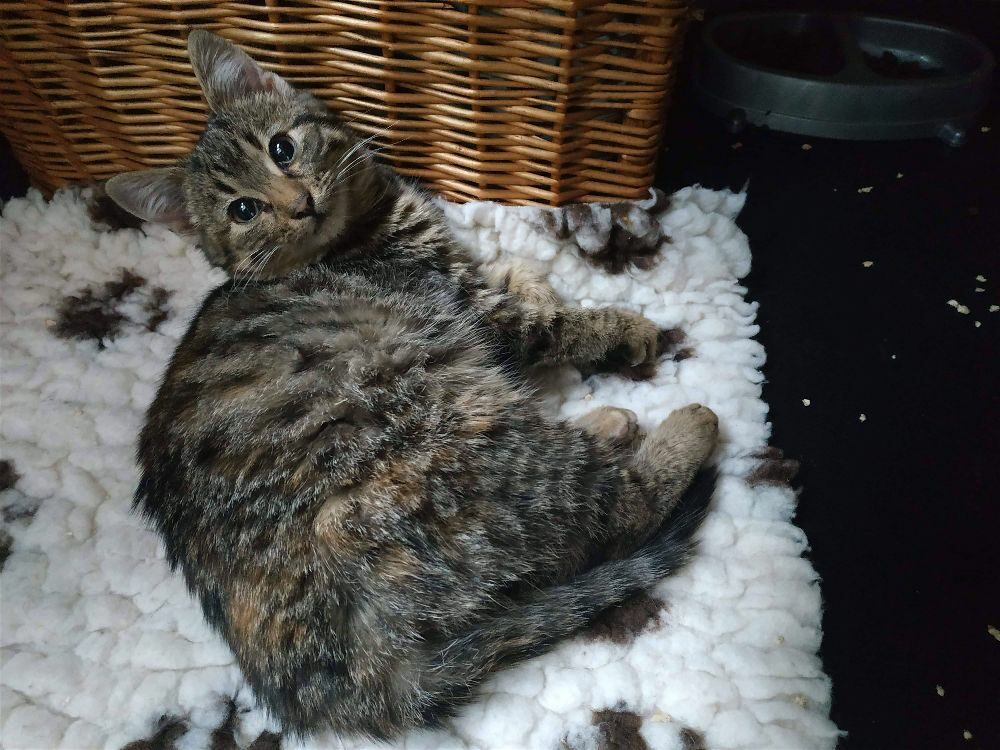 Koteczka jest wyjątkowo wdzięczna i kochana. Patrzy na swoją opiekunkę z takim uwielbieniem, że nie sposób odmówić jej kolejnej porcji jedzonka. Świetnie dogaduje się ze swoją współlokatorką Nicky 🙂