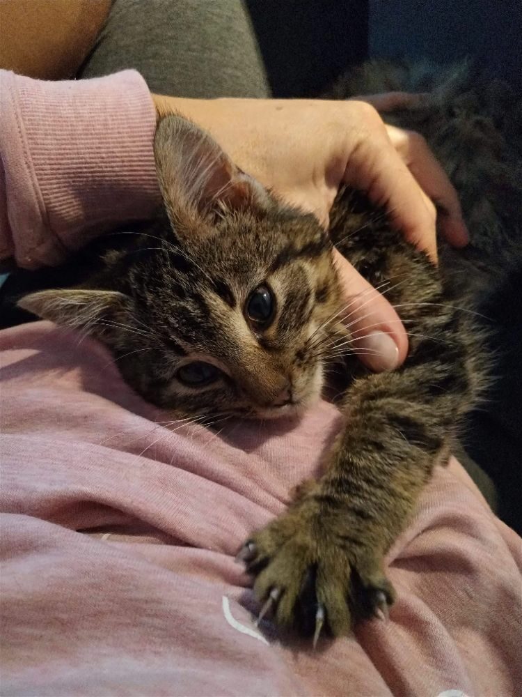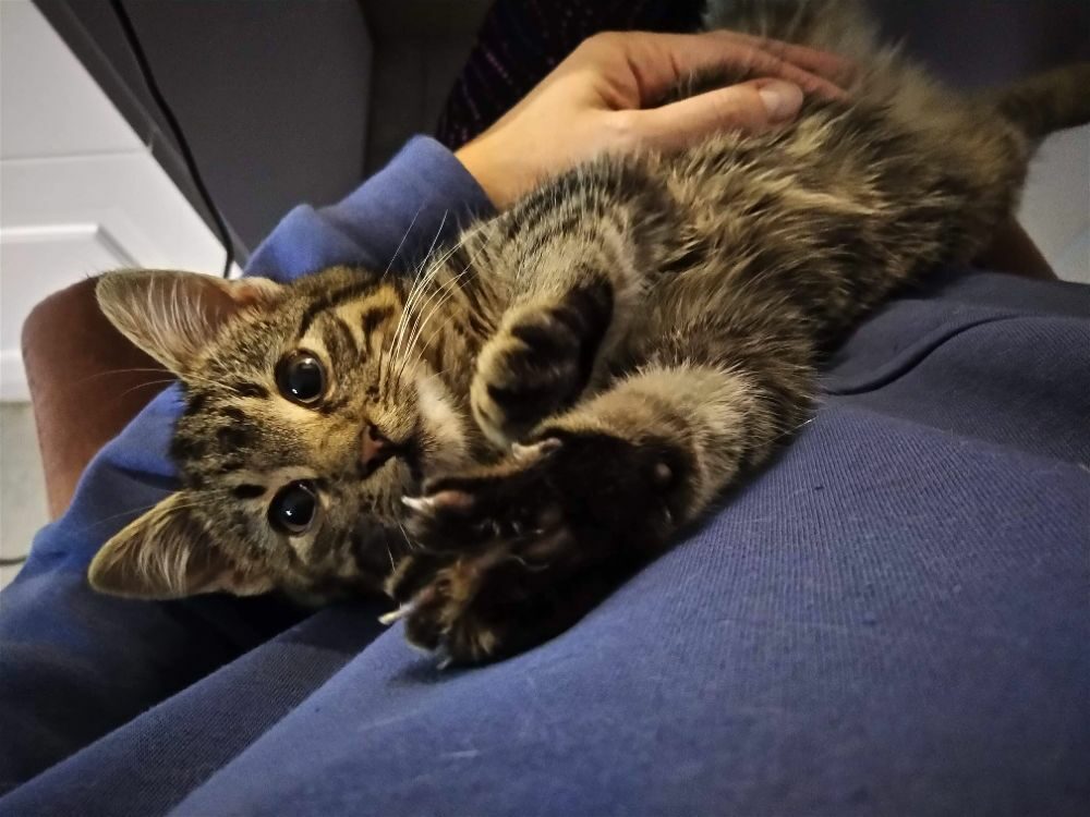 Cudownie rozmruczane kocie dziecko, znalezione błąkające się po ulicach Stalowej Woli w zimną, grudniową noc.