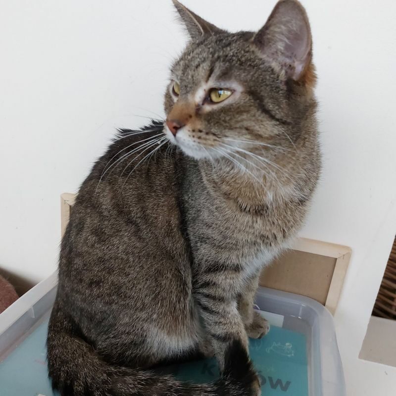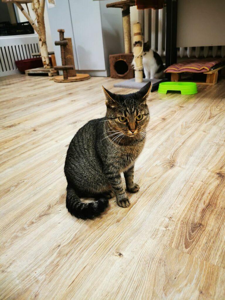Pani doktor próbowała znaleźć jej dom. Oczywiście bezskutecznie. Nikt nie chce kulawego burego kota…jeszcze bury puchaty, ale ona jakaś taka szorstka, niezbyt zachęca do przytulania…