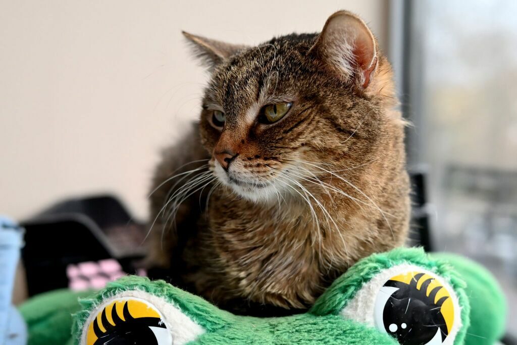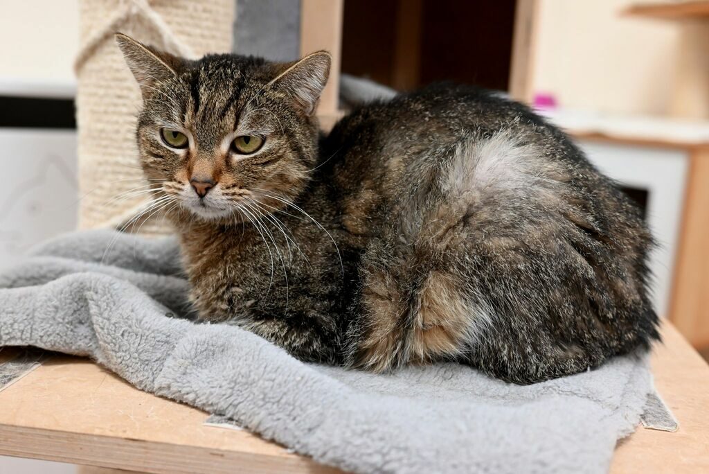 Eryka trafiła do nas dawno temu z lecznicy weterynaryjnej. Była niechcianą bezdomną kotką. Burą na dodatek. Karmiciele szybko przestali się nią interesować, tym bardziej że jej wisząca łapka to potencjalny koszt do poniesienia.