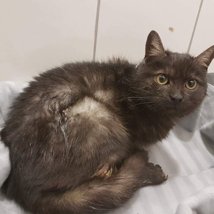 Otrzymaliśmy zgłoszenie o bardzo ciężko rannym kotku, widzianym na jednym ze stalowowolskich osiedli domków jednorodzinnych. Kocurek wył z bólu, błagając o pomoc, lecz był już tak głodny, odwodniony i wyziębiony, że nie miał siły dalej się przemieszczać. Z jego tylnej łapki ciekła ropa, a zapach jaki czuć było już z dużej odległości, świadczył że stan jest bardzo bardzo zły. Ropek został odłowiony i wstępnie opatrzony. Było jednak jasne, że łapki nie da się uratować, a za to trzymaliśmy mocno kciuki, aby nie wdała się sepsa.