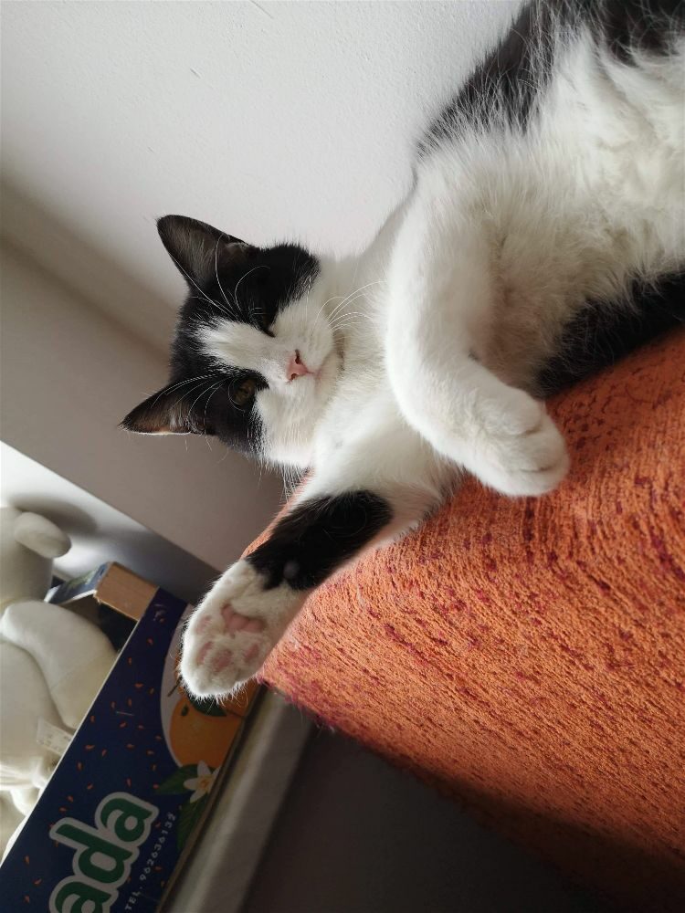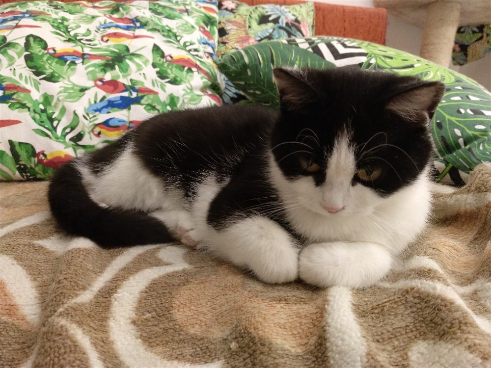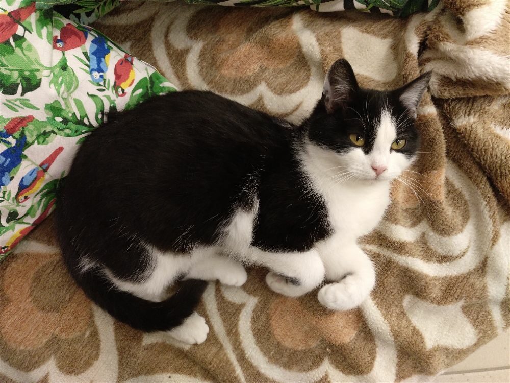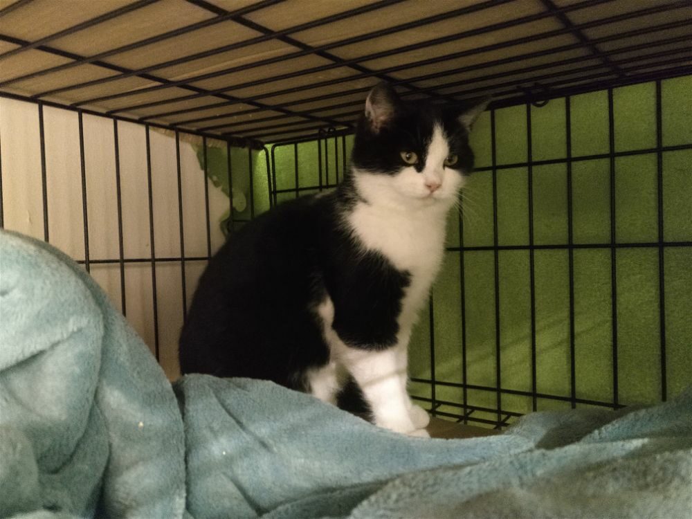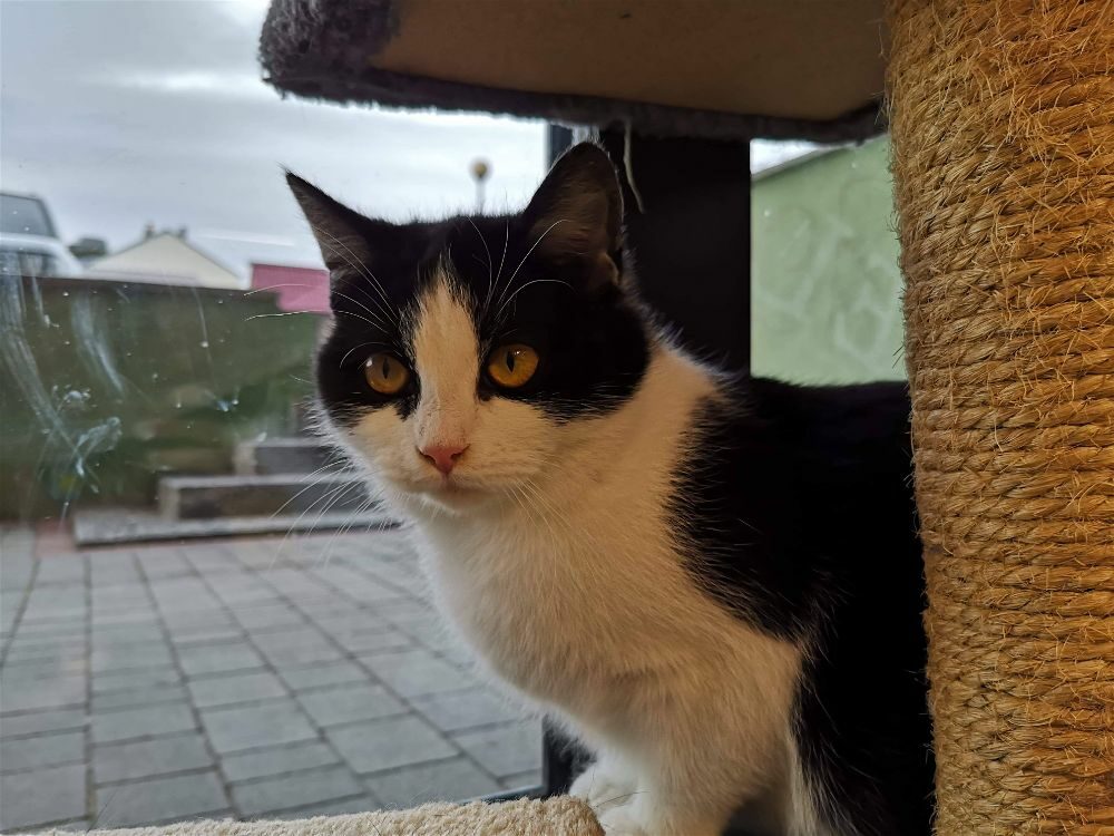 Kotka została znaleziona na czyjejś posesji wraz z trójką rodzeństwa, prawdopodobnie przyszły od kotki sąsiadów pozostawione samopas. Uwielbia głaskanie. mruczy, ugniata, przychodzi do człowieka po więcej, czasem jest bojaźliwa. Uwielbia ganiać za piłeczkami. Do oddania z kocim towarzystwem.