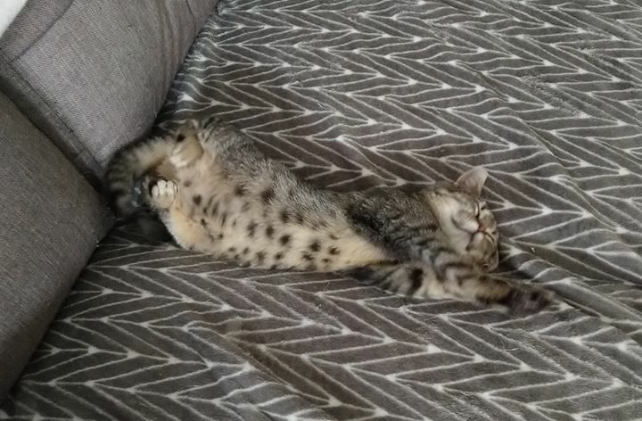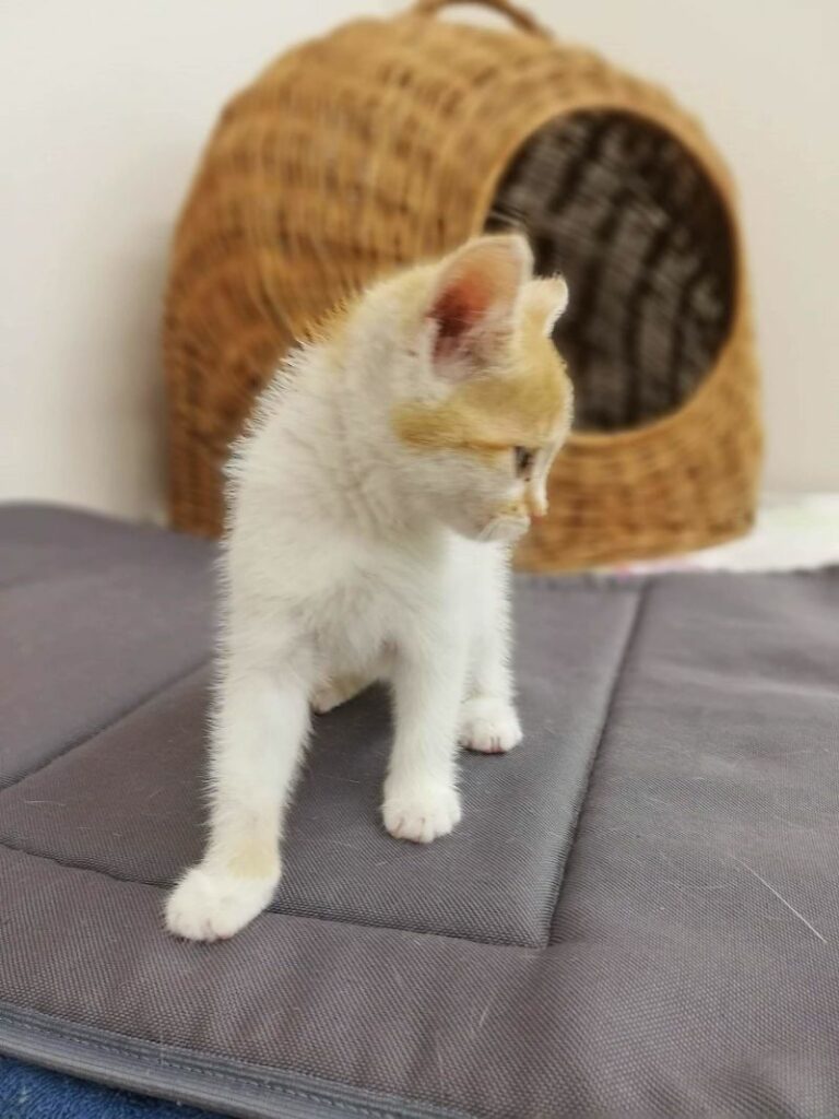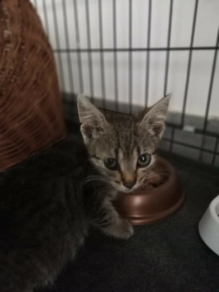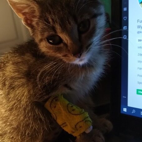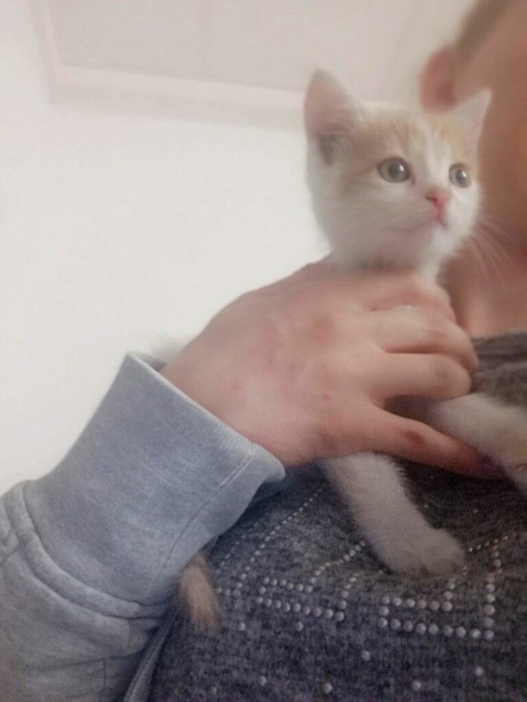 Mała kotka, bardzo uparta, ruchliwa i kochana. Ciągle w ruchy, ciężko ją zatrzymać. Uwielbia zabawy i ganianego.