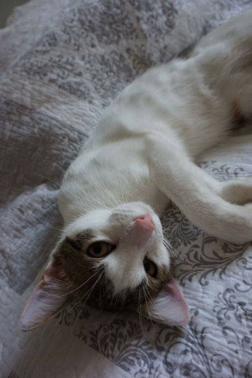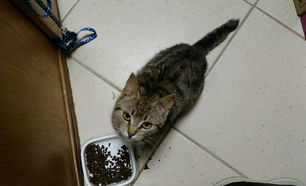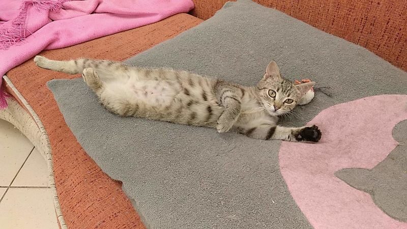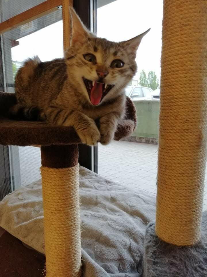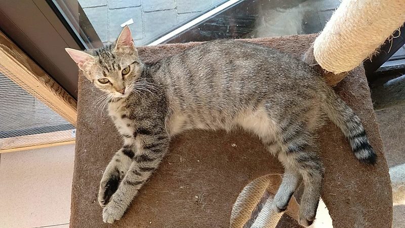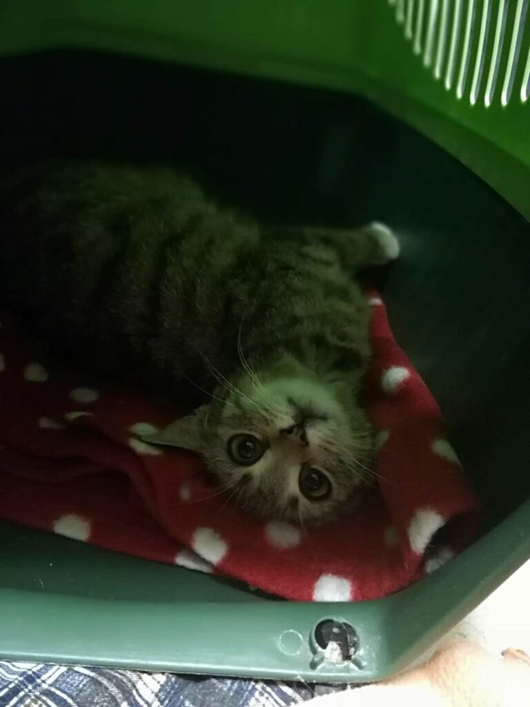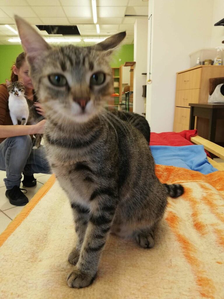Ta maleńka kruszynka, o posturze 4-miesięcznego kociaka, została znaleziona na ulicy, będąc w zaawansowanej ciąży. Jest tak drobna, że poród pięciu kociąt, wiązałby się dla niej z ogromnym ryzykiem. Dzięki szybkiej interwencji Pani weterynarz, która po godzinach przeprowadziła zabieg sterylizacji, koteczka nigdy nie stanie w obliczu tych zagrożeń.. Malutka jest wyjątkowo przyjazna i ufna w stosunku do ludzi. Docenia pełną miseczkę i bezpieczne schronienie w koszyczku, a na każe zawołanie, wychodzi się przywitać. Mimo tego, że wygląda na kocie dziecko, musiała już w życiu dużo przejść. Jest niedożywiona i ma urwaną końcówkę ogonka, co świadczy o tym, że uległa albo wypadkowi, albo padła ofiarą złych ludzi. Mamy wielką nadzieję, że szybko znajdzie się dobra dusza, chętna przygarnąć tą małą burą istotkę – choćby tymczasowo…