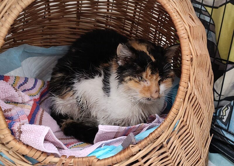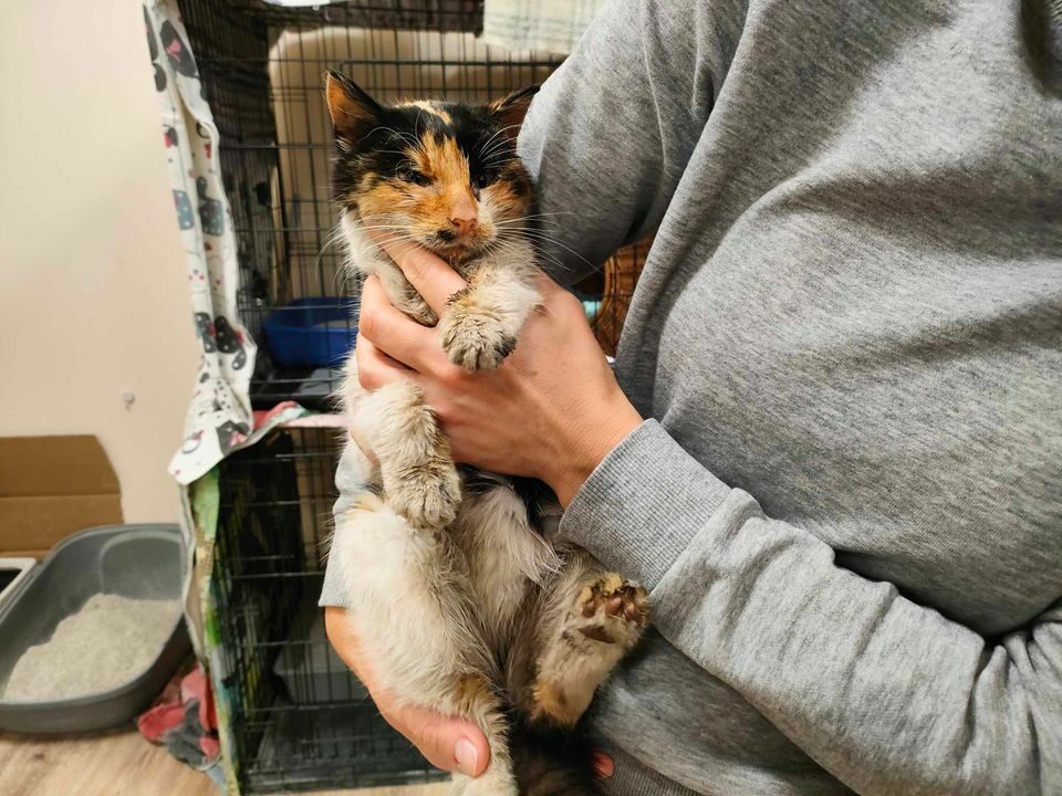 Otrzymaliśmy zgłoszenie, że do sklepu na jednej z wsi, pod Stalową Wolą, przybłąkała się brudna, zaropiała i przeraźliwie chuda kotka. Była przeganiana miotłą i chyba tylko koci aniołowie sprawili, że na miejscu pojawiły się osoby, które lubią koty.