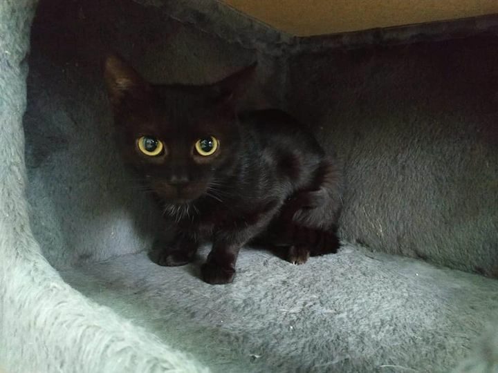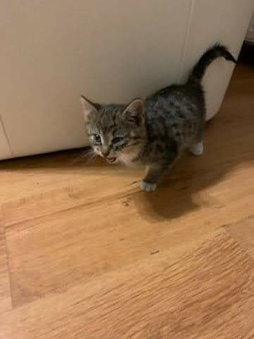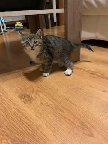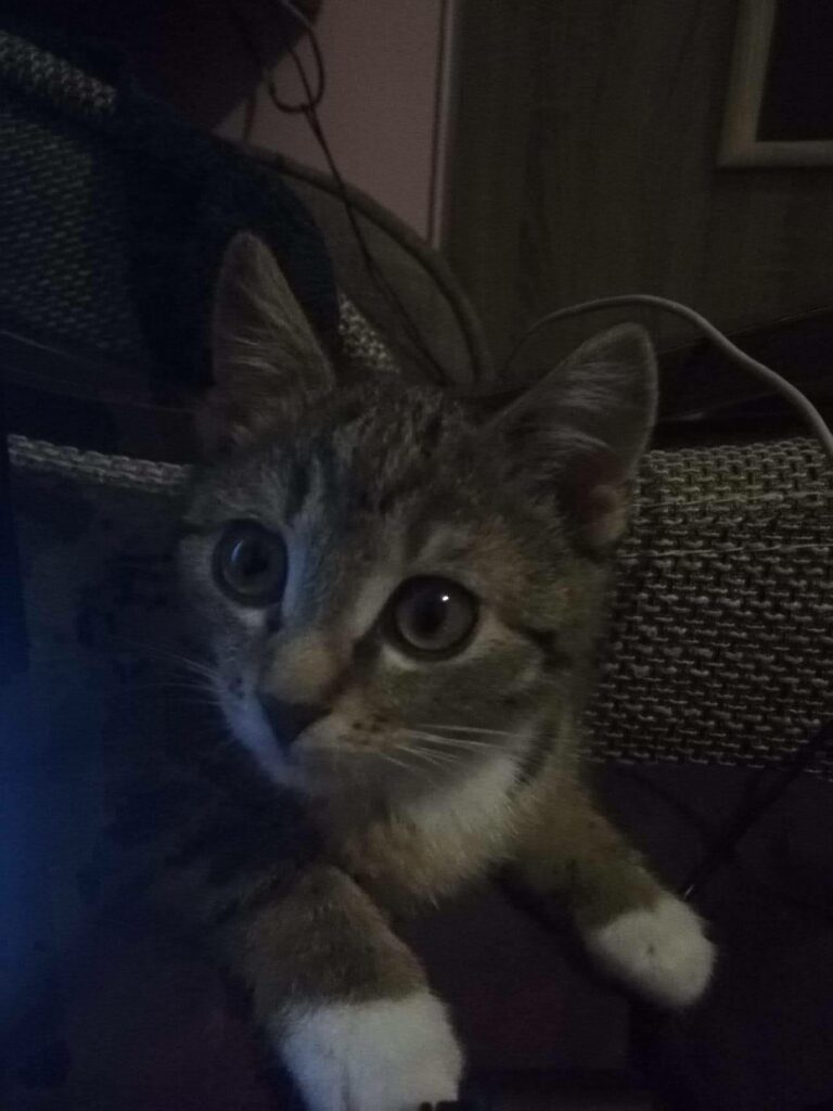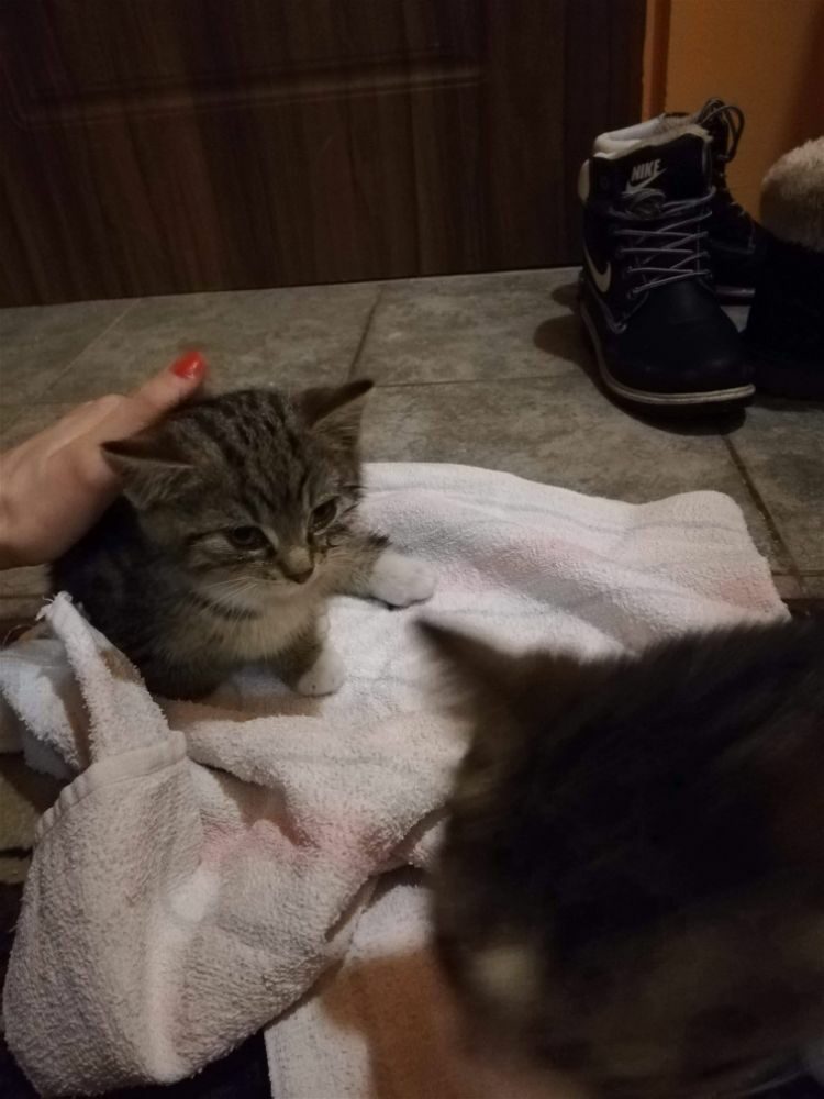 Kociak został znaleziony w lesie, zmarznięty, z uszkodzoną tylną łapką i podejrzeniem kociego kataru.