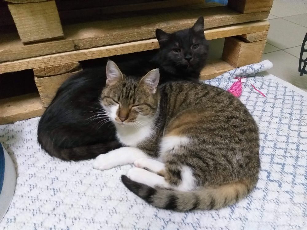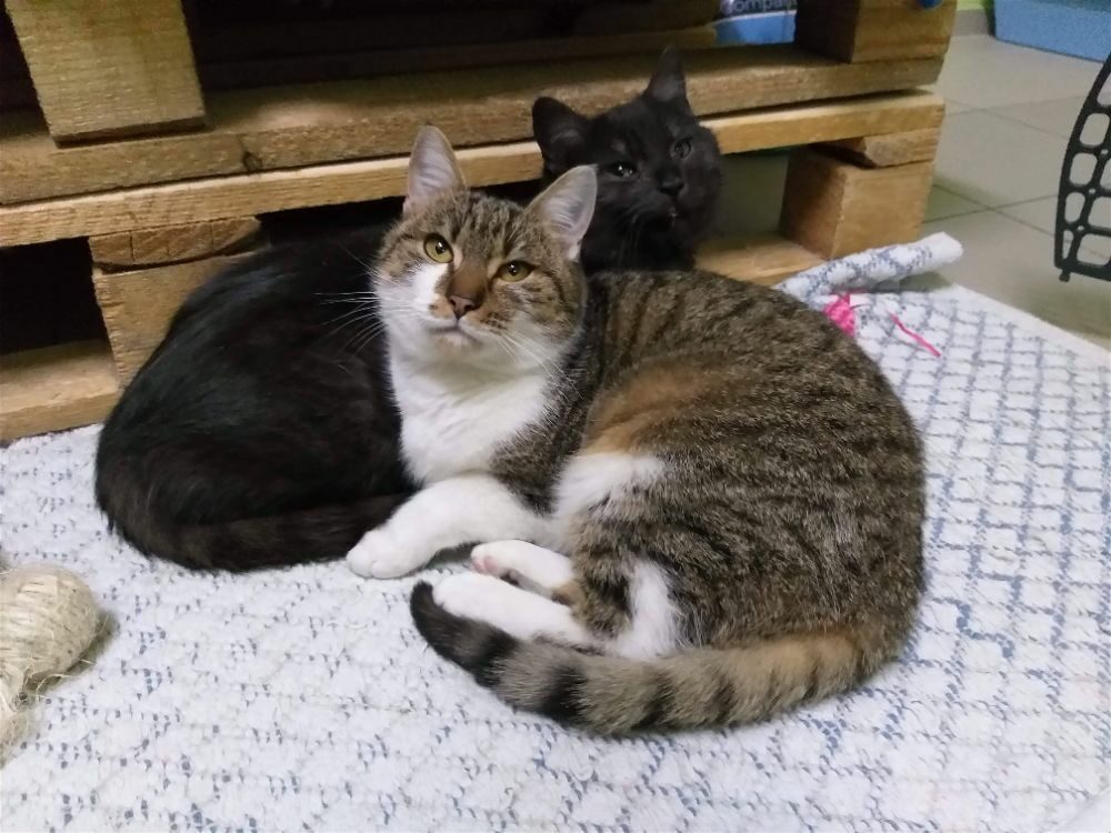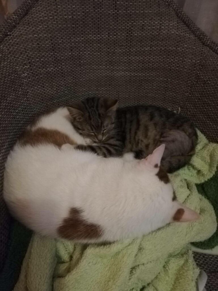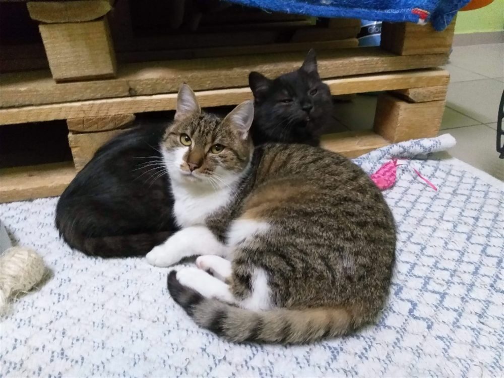 Wśród naszych kotów obserwujemy prawdziwe przyjaźnie. Na zdjęciu Lipek i Olimpia. Żadne z nich nie wybiera się do domu stałego, a my nie chcemy ich nigdy rozdzielać.