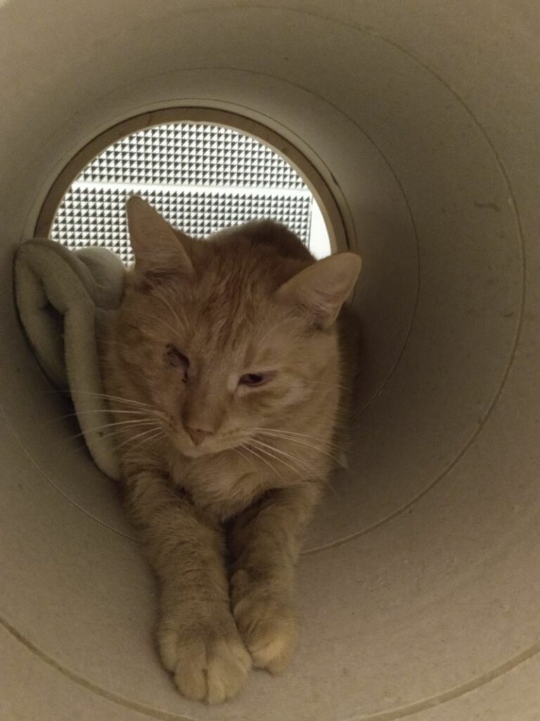 Tomcio trafił do kociarni po tym jak znaleziony został skulony pod balkonami jednego z bloków. Jak się dowiedzieliśmy, mieszkał na 4. piętrze, od kilku dni nikogo nie było w domu. Wyskoczył…