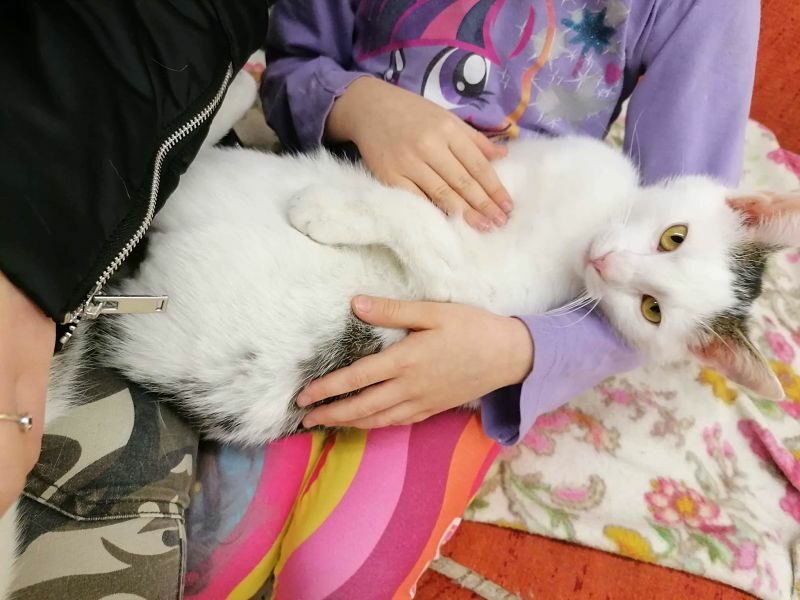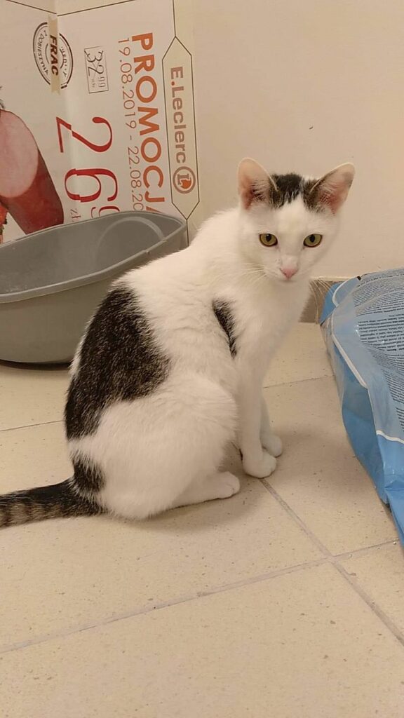 Kotka przybyła na sterylizację, tak się łasiła, mruczała i ugniatała, że została. Kotka ma białaczkę więc szukamy jej domu jako jedynak lub z innym kotem białaczkowym.