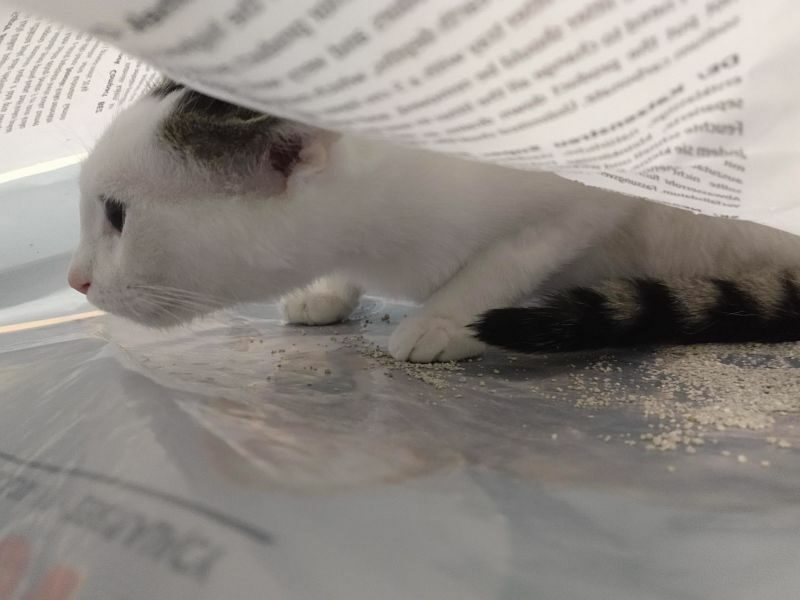 Kociaki są jeszcze bardzo brudne, ale trudno nam się powstrzymać przed przytulaniem tych małych mruczących kulek. Maluchy mruczą nawet przy pobieraniu krwi na badania, a miseczka z suchą karmą jest tak wspaniała, że trzeba ją pougniatać.