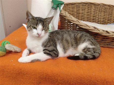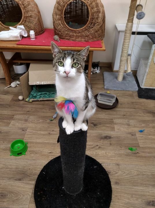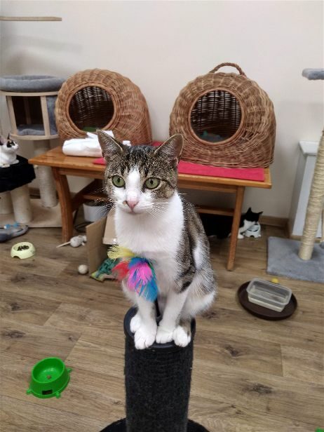 Rynio to żywiołowy kocurek. Kocha zabawy, uwielbia kiedy wkoło coś się dzieje, a inne koty zachęca do zabaw. Niestety, Rynio jest nosicielem kociej białaczki, dlatego szukamy mu domu z innym kociakiem białaczkowym lub z kotami zdrowymi lecz dwukrotnie na białaczkę szczepionymi. Rynia białaczka jest całkowicie bezobjawowa, a maluch tryska zdrowiem i energią. Warto adoptować kotki FeLV +. Nosicielstwo to nie choroba, a sam jego fakt zmniejsza znacznie szanse na adopcję.