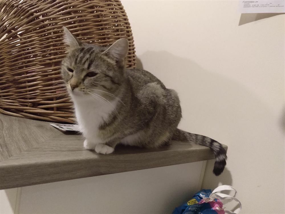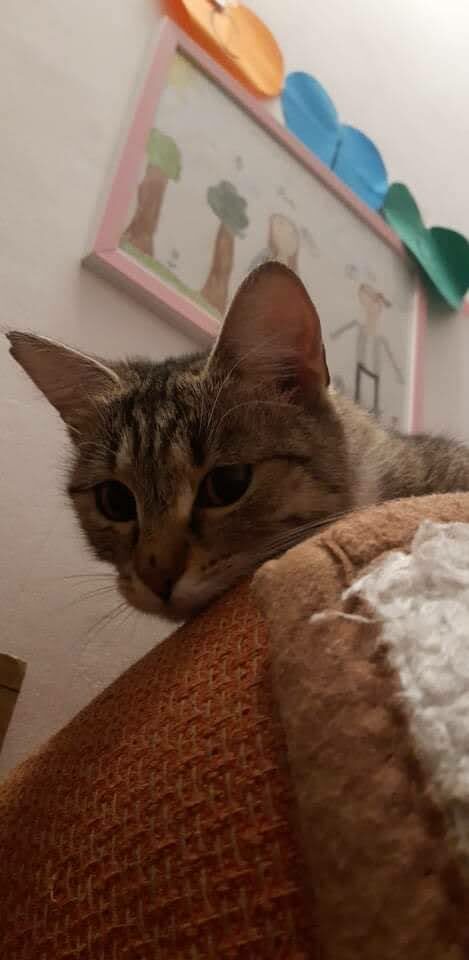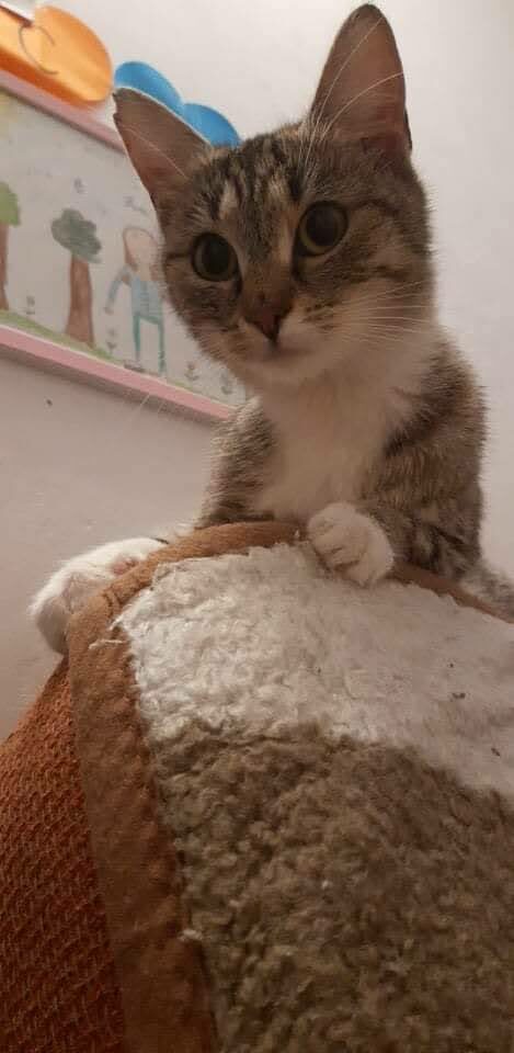 Kotka jest bardzo delikatna, uwielbia bawić się i przytulać do człowieka. Kiedy się wtuli usypia swoim mruczeniem. Nie z każdym kotem się dogaduje, więc szuka domu jako jedynaczka lub do spokojnego kota.