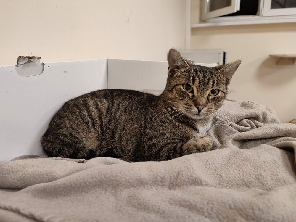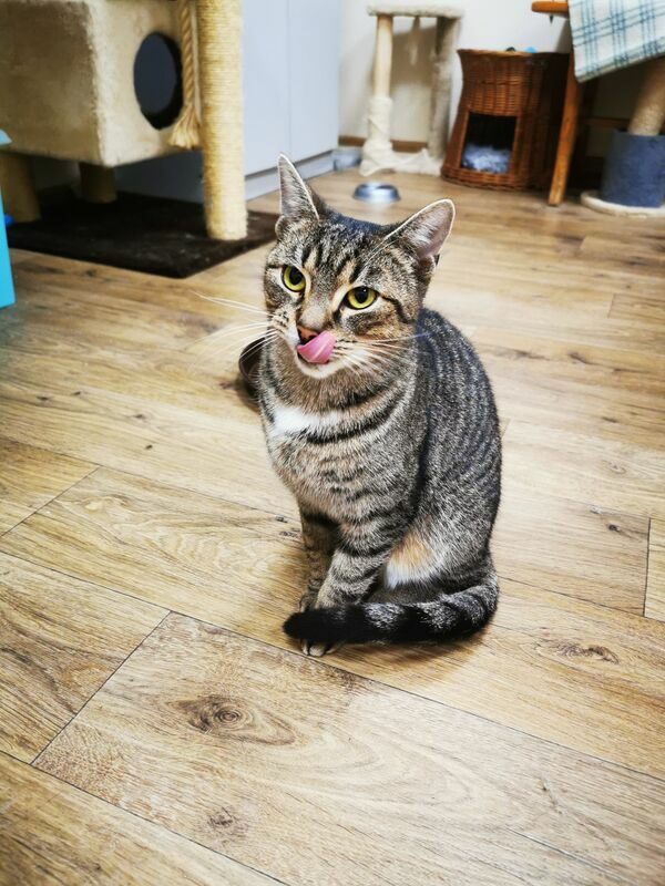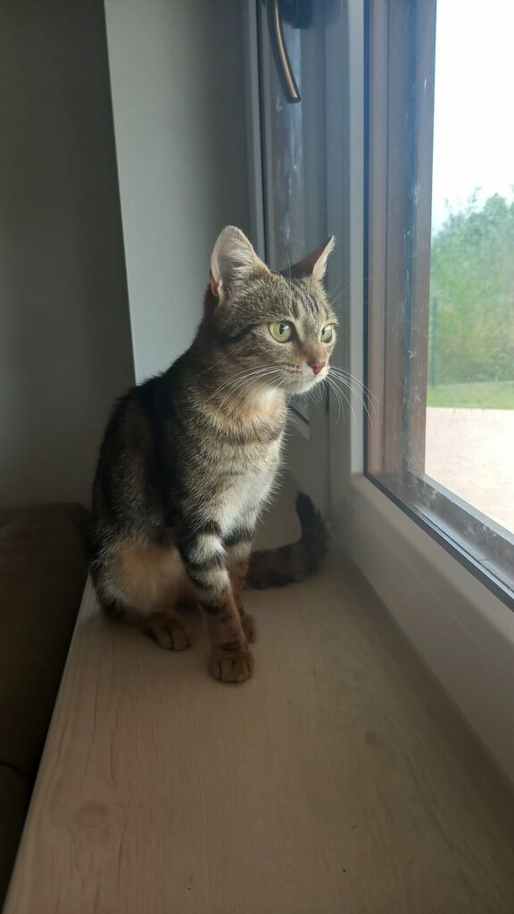 Wyciągnięty zupełnie przypadkiem z jednej z bardzo kiepskich gminnych przechowalni. Pojechaliśmy po innego kota i usłyszeliśmy: „a może tego też? Tylko dziki jest.” Wystarczyło spojrzeć w jego przerażone oczka, aby decyzja sama się podjęła.
