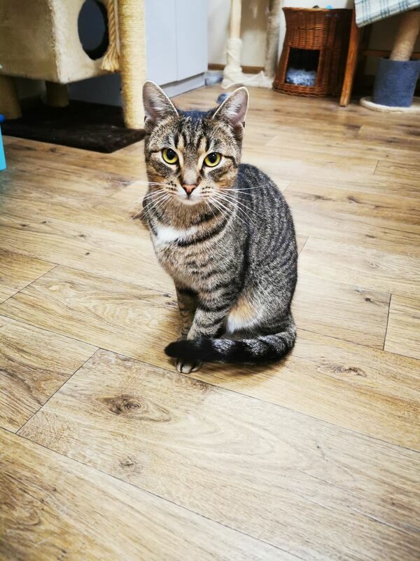 Malinka to przecudna marmurkowa kotka w wieku około 8 miesięcy.