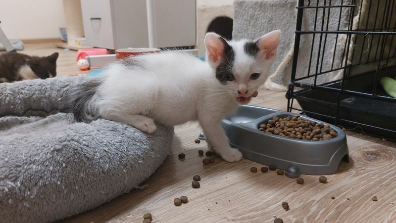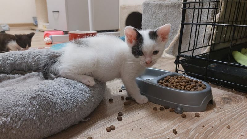 To małe kilku miesięczne cudo, kocha koty i człowieka. Wchodząc do pokoiku mówię pieszczotliwie: gdzie są moje Prosiaczki? Prosiaczek wtedy przybiega i „odzywa się” po kociemu, pokazując że jest i ewentualnie pakuje się na plecy, bądź opiera łapki o człowieka, żeby wziąć go na ręce i przytulać. Rozdaje buziaki, trąca noskiem i pakuje się na kolana. Wspaniały, rezolutny malec