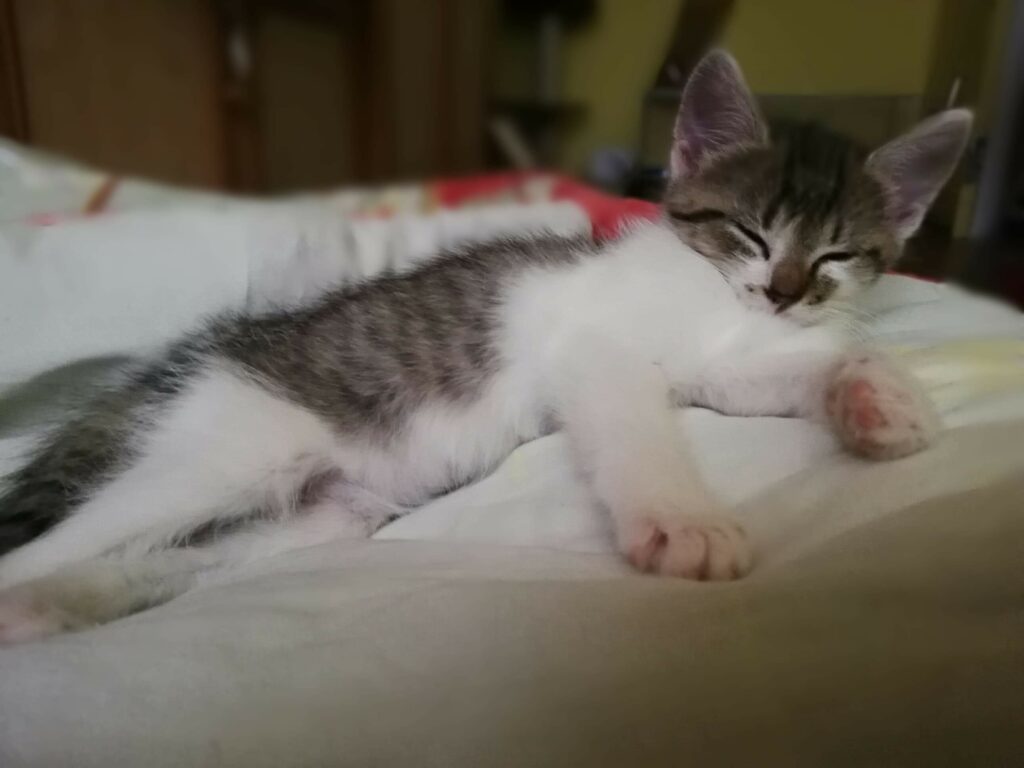 Mala słodka kotka, która urodziła się u nieodpowiedzialnych ludzi w domu. Jej opiekunowie postanowili pozbyć się maluchów (oczywiście zbyt wcześnie odbierając je od matki)… kocie dzieci zostały zabrane na rynek i rozdawane przypadkowym osobom. Inka była ostatnim kociątkiem, dostrzeżonym przez naszą wolontariuszkę i została odebrana, zanim trafiła w potencjalnie niepowołane ręce. Inka była oczywiście potwornie zarobaczona i z pewnością niezaszczepiona. Teraz kotak jest bezpieczna, odrobaczona i zaszczepiona. Jest bardzo grzeczna, mrucząca, miziasta i kochająca ludzi.