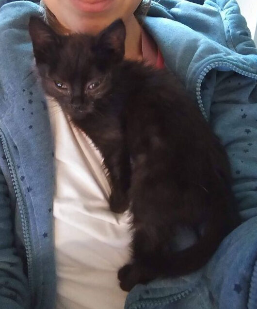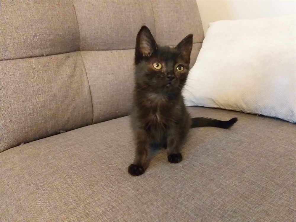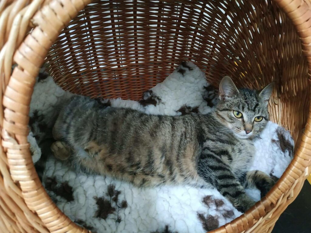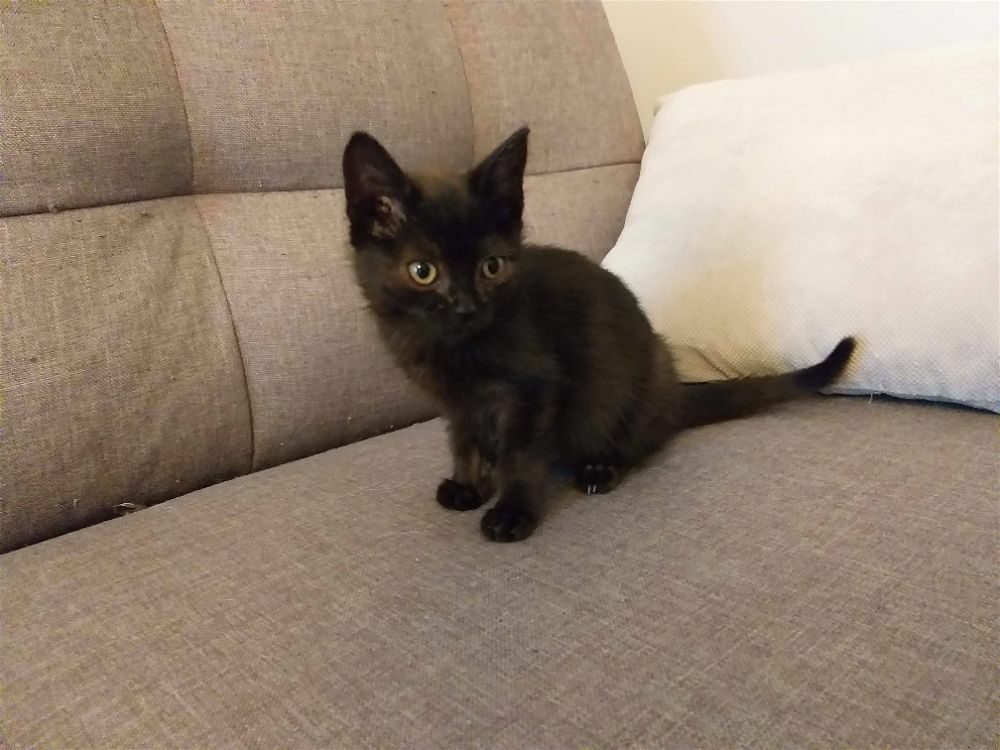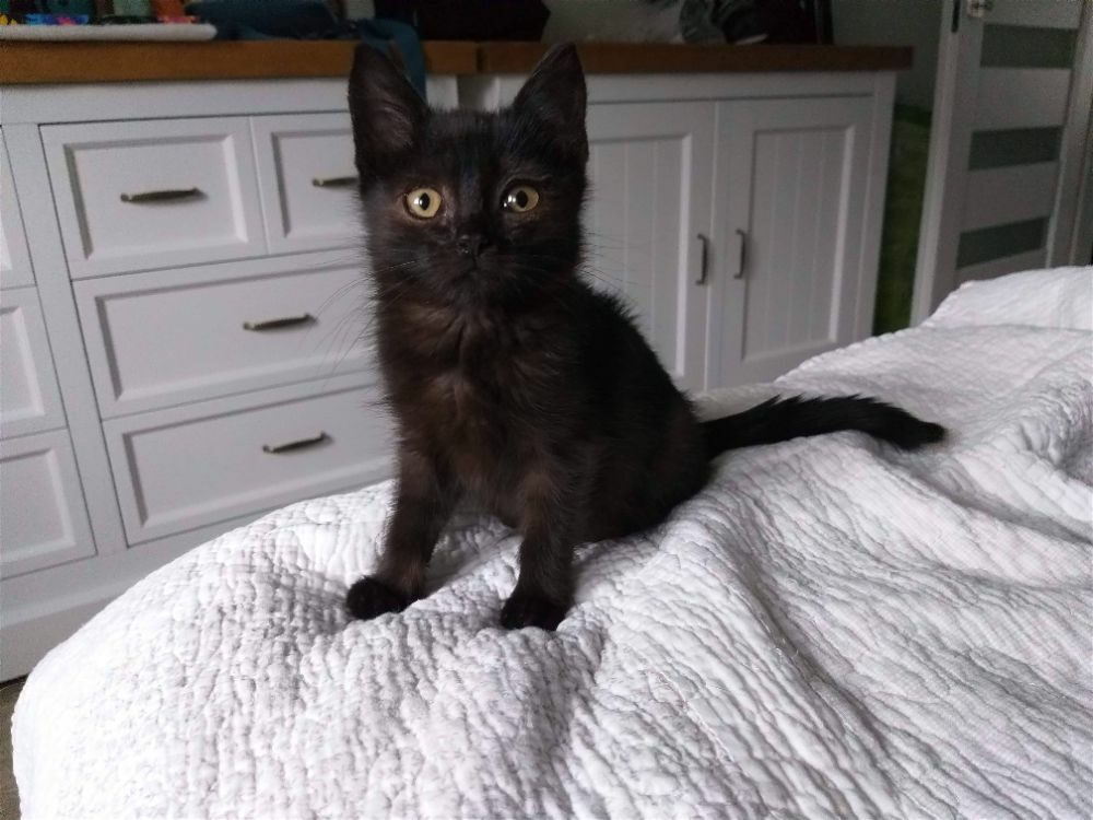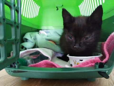 To maleństwo zostało podrzucone do jednego z domów w okolicach Stalowej Woli. Jej stan pozwala stwierdzić, że w swoim krótkim życiu zaznała głównie bólu i cierpienia – zaawansowany koci katar, świerzbowiec, cała masa pasożytów zewnętrznych, który gryzły ją okrutnie…przez skórę czuć każdą kosteczkę, a jej sierść jest zrudziała, co też stanowi dowód bardzo złej kondycji.