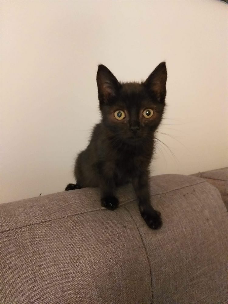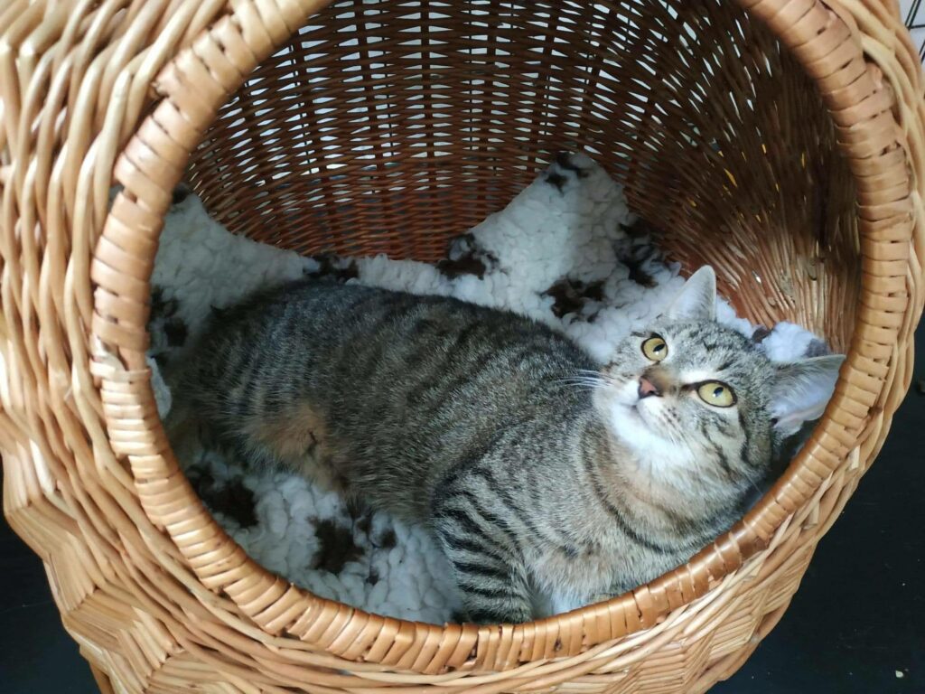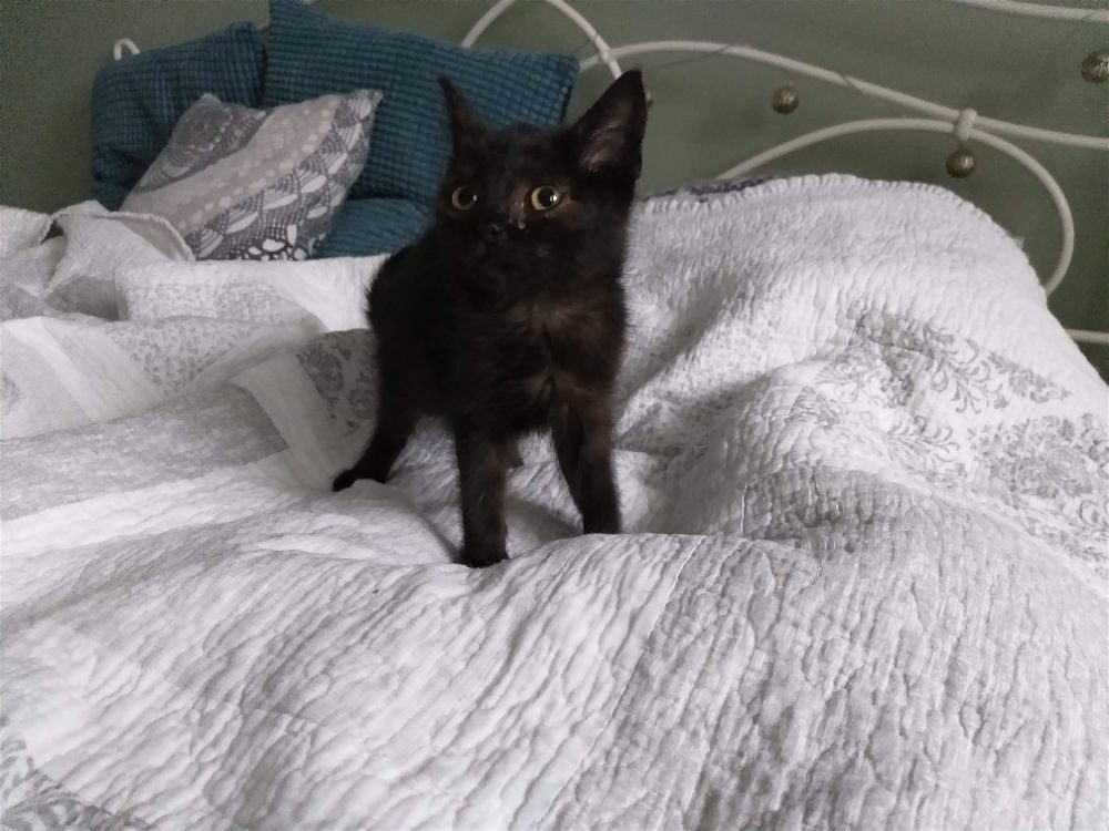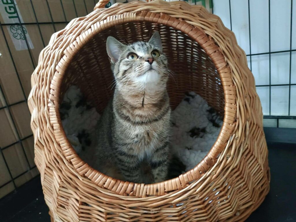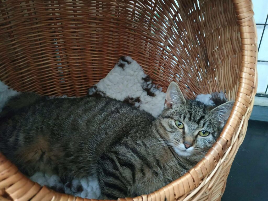 To maleństwo zostało podrzucone do jednego z domów w okolicach Stalowej Woli. Jej stan pozwala stwierdzić, że w swoim krótkim życiu zaznała głównie bólu i cierpienia – zaawansowany koci katar, świerzbowiec, cała masa pasożytów zewnętrznych, który gryzły ją okrutnie…przez skórę czuć każdą kosteczkę, a jej sierść jest zrudziała, co też stanowi dowód bardzo złej kondycji.