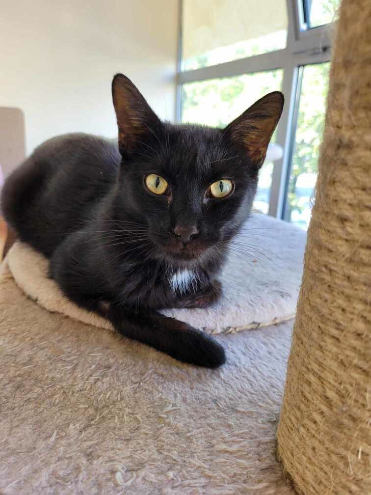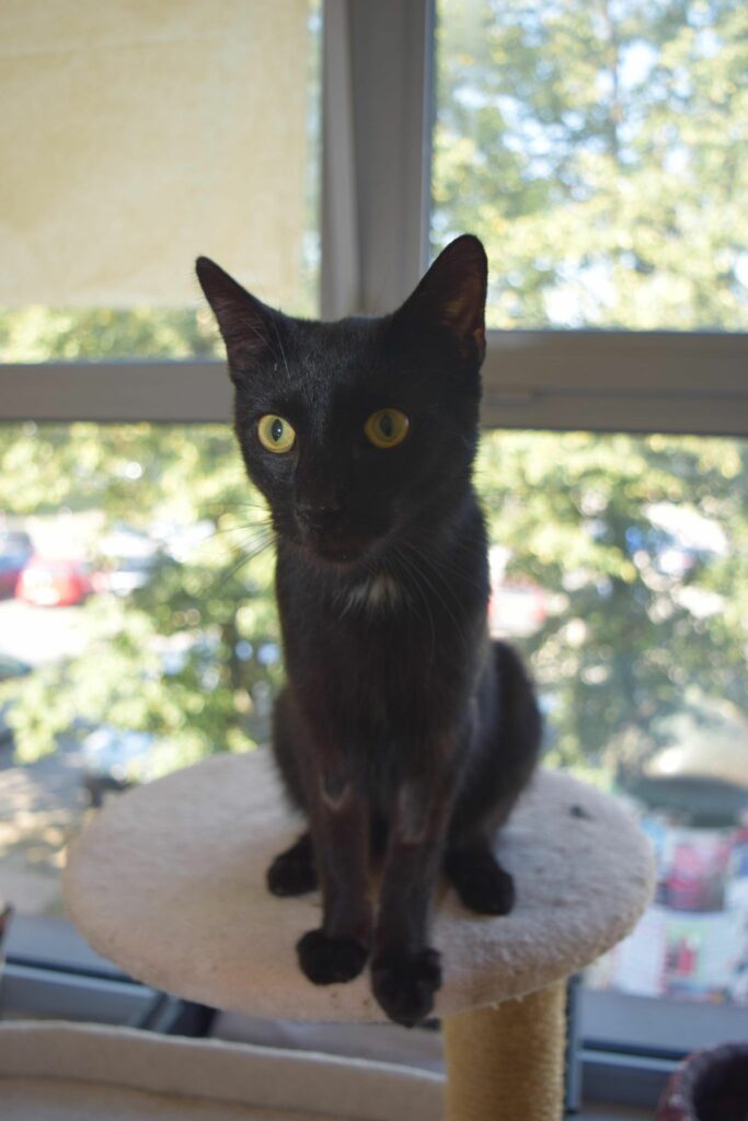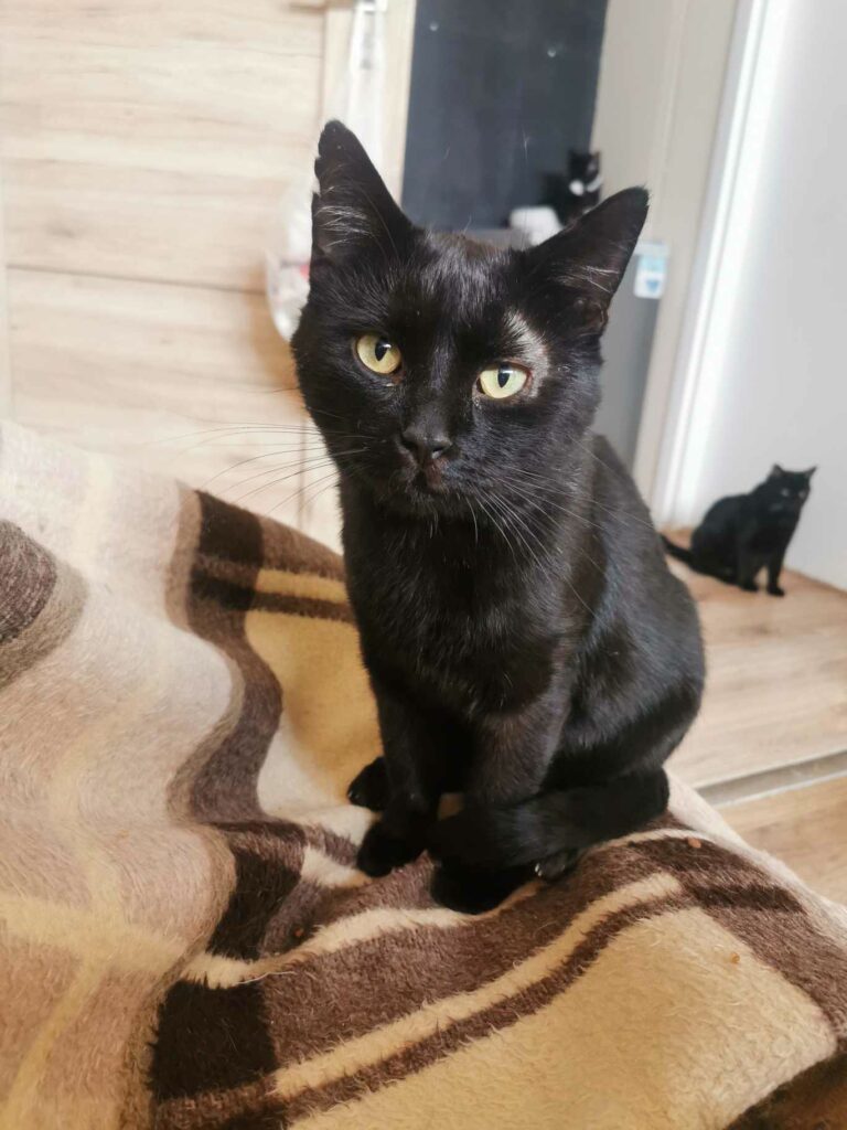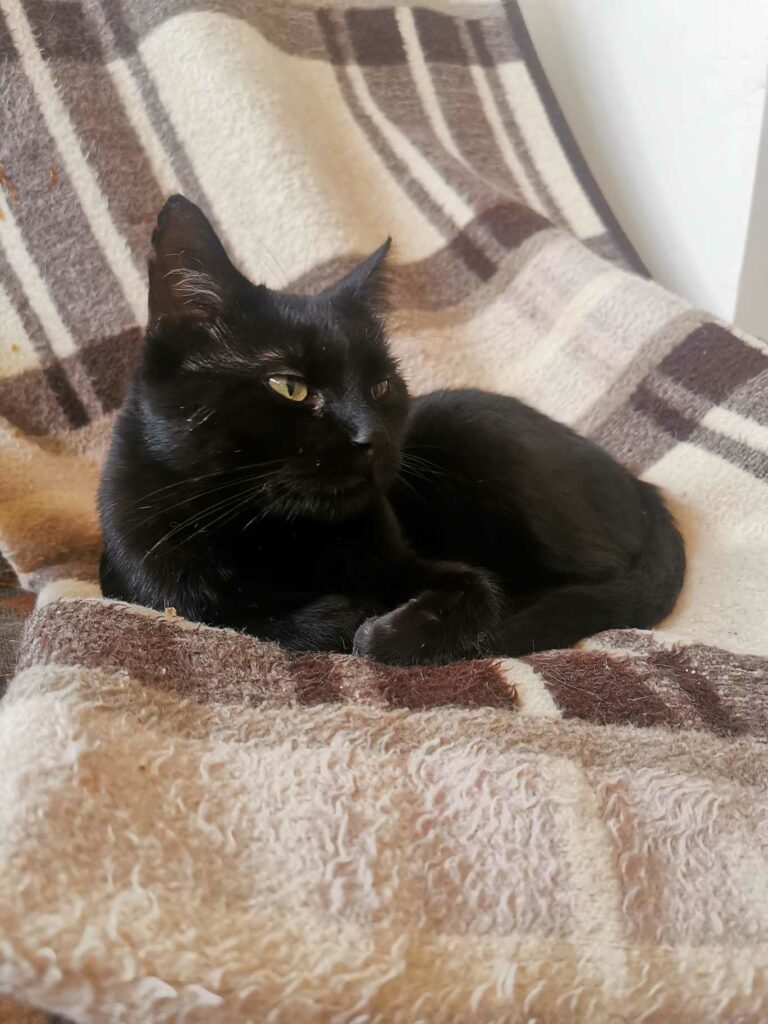 Po niespełna roku, jest już radosnym, zadowolonym kocim kawalerem. Problemy socjalizacyjne oczywiście wystąpiły i nadal obserwujemy u niego przebodźcowanie i nerwowość, ale pamiętając o 3 latach jego niewoli, dajemy mu przestrzeń i wyrozumiałość.