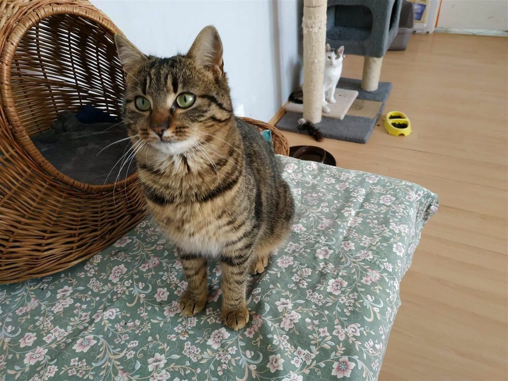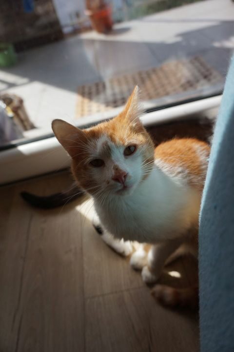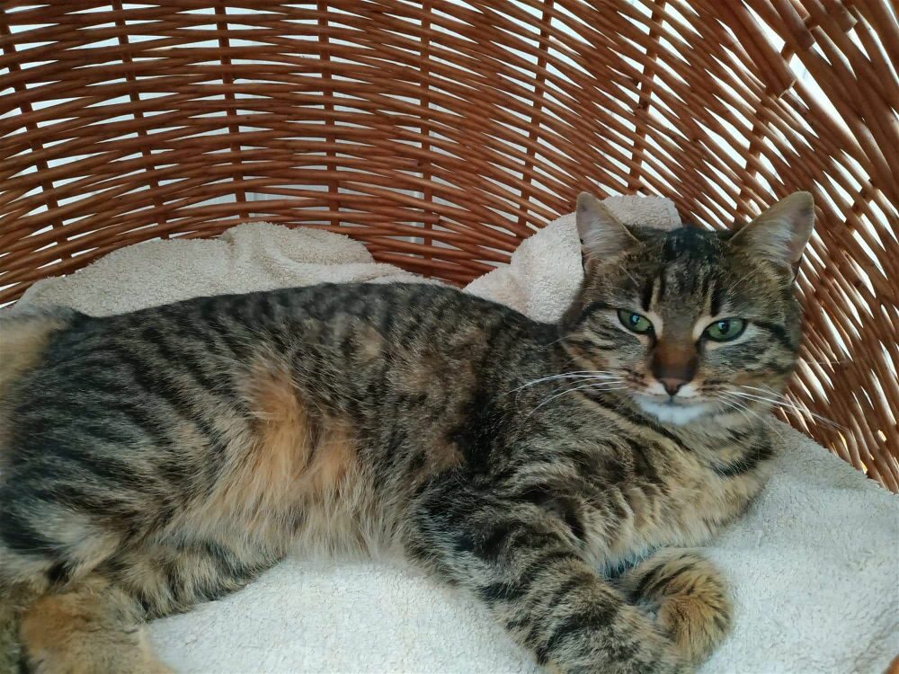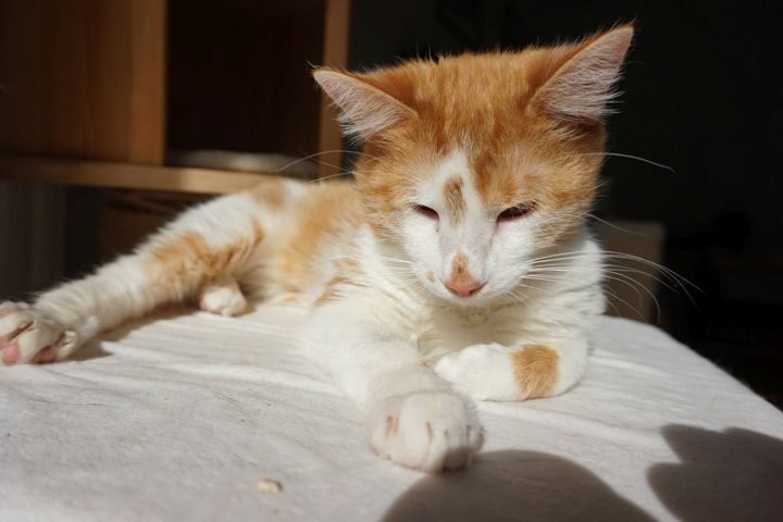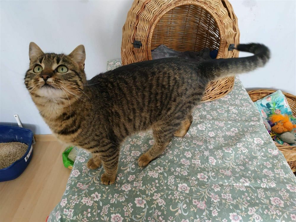 Floyd jako młodziutki kocurek trafił do nas z interwencji. Początkowo był w bardzo ciężkim stanie i miał silne objawy neurologiczne – trzęsienie główką, utrata równowagi – szczególnie widoczne przy stresie. Nie znaleźliśmy przyczyny takiego stanu, lecz znacznie się on poprawił w domu tymczasowym. Objawy prawie całkowicie ustąpiły.