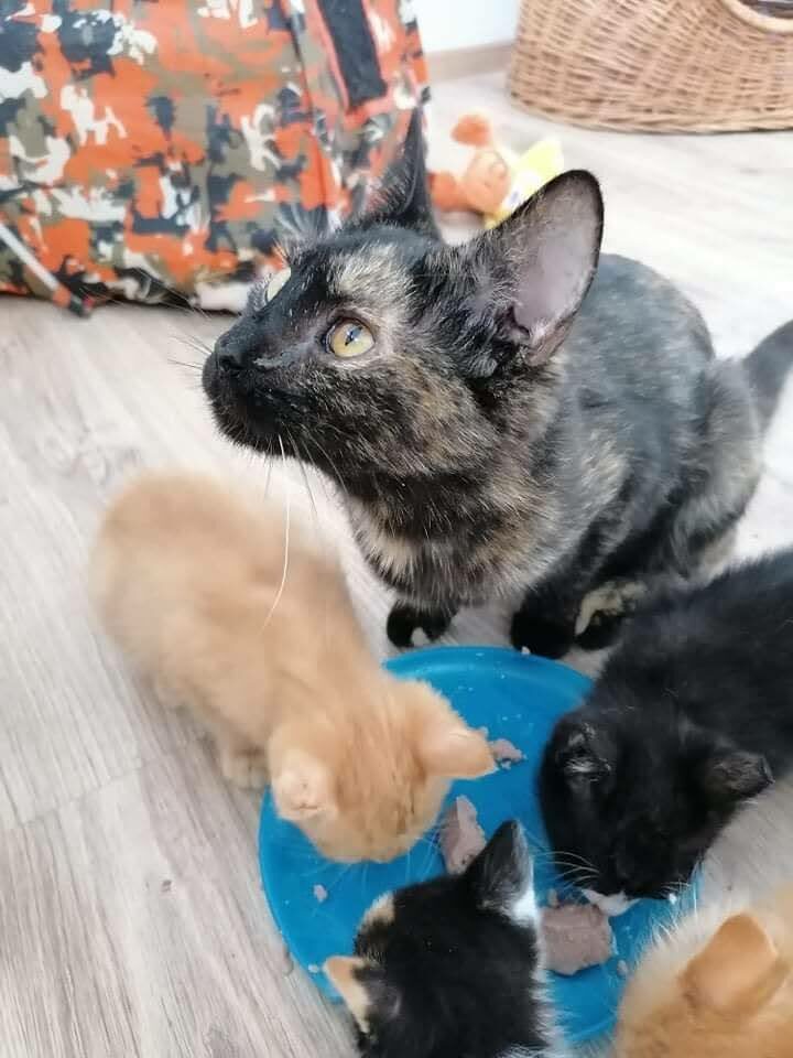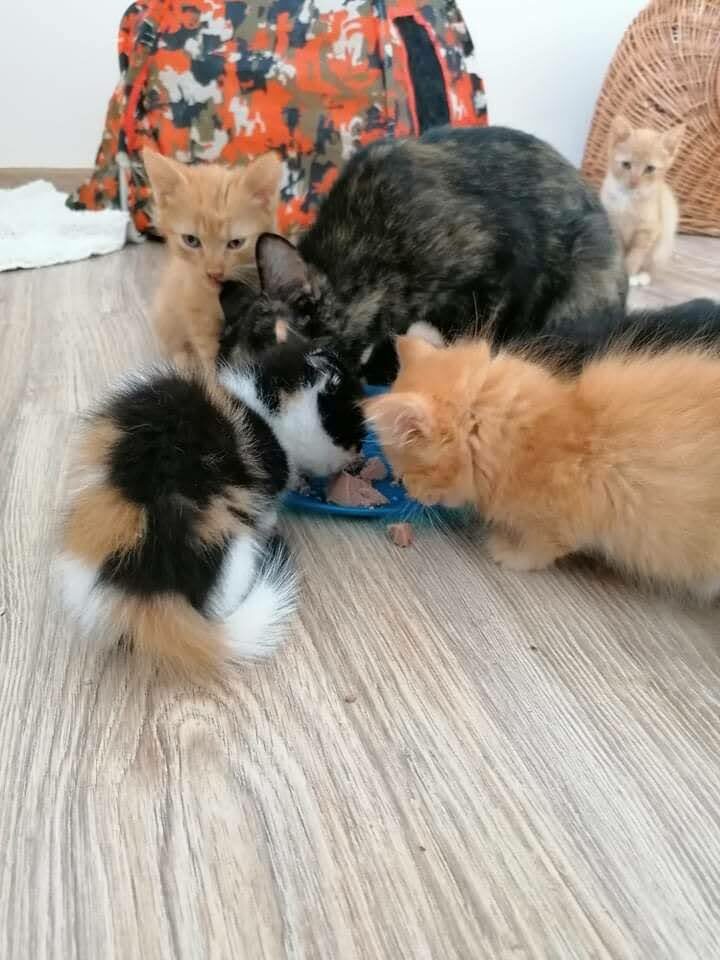 Ta interwencja na długo pozostanie w naszej pamięci. Trzy kocice i sześć bardzo ciężko chorych kociąt, porzuconych przy drodze w lesie. Na początku trafiło do nas niestety tylko część. Dzięki pomocy pań z Sandomierza, trafiły do nas kolejne koty, porzucone w lesie. Nerwowa kotka i chore maleństwo. Kotka początkowo skakała po ścianach że strachu, lecz kiedy zobaczyła maluchy, zaczęła je ochoczo myć i karmić.