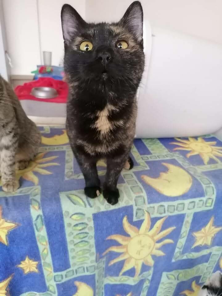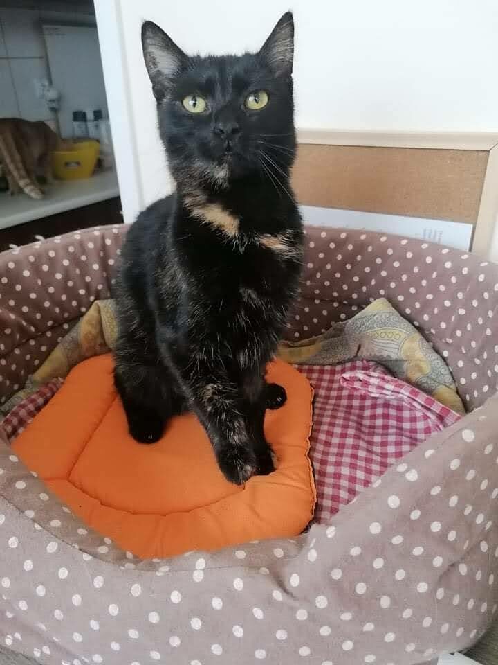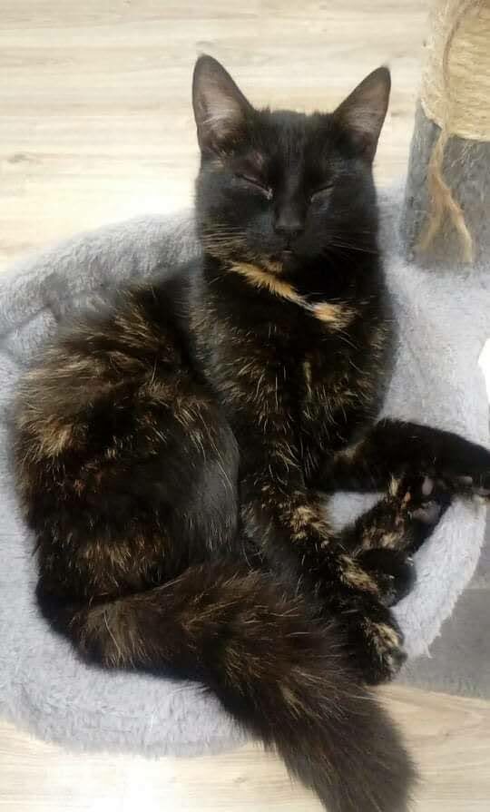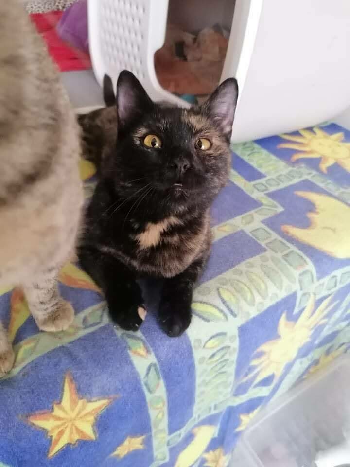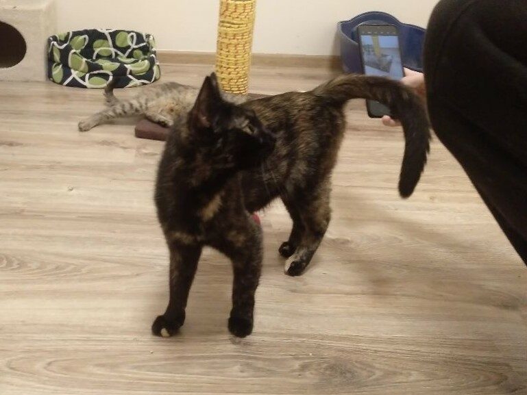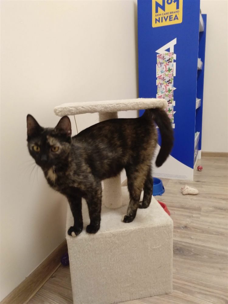 Z maluchami codziennie jesteśmy w lecznicy. Dorosłe kotki cierpią na infekcje oczu, uszu, a jedna z nich niepokoi nas ze względu na przyspieszony oddech i dziwne bólowe odruchy. Łącznie mamy z tamtego miejsca trzy kotki i pięć kociąt. Riona, z początku niespokojna, okazała się wyjątkowo miła i chętna do głaskania. Jest pełna energii i wdzięku.