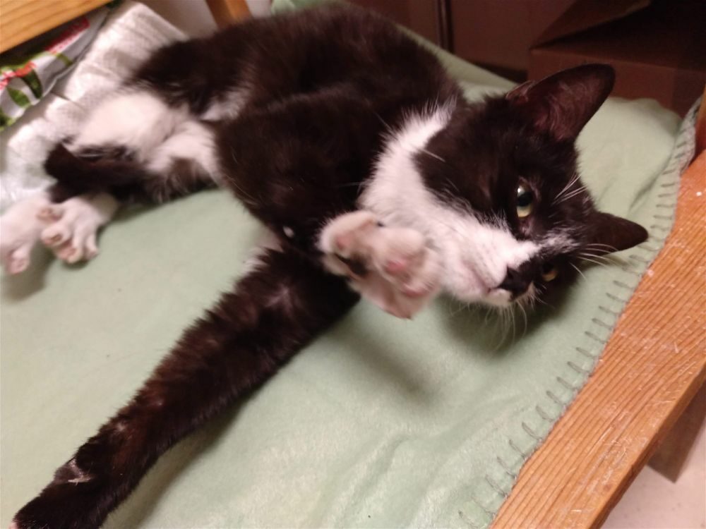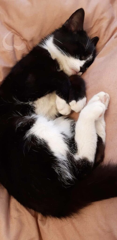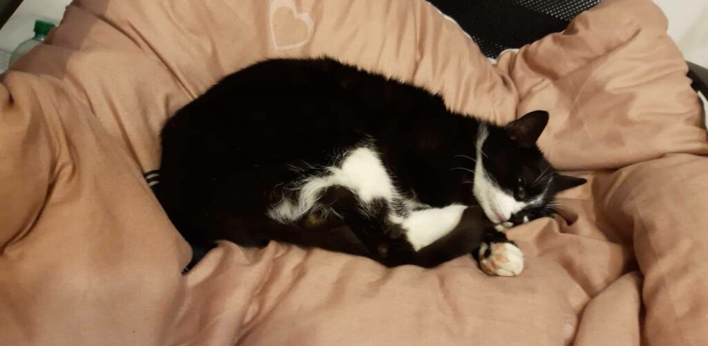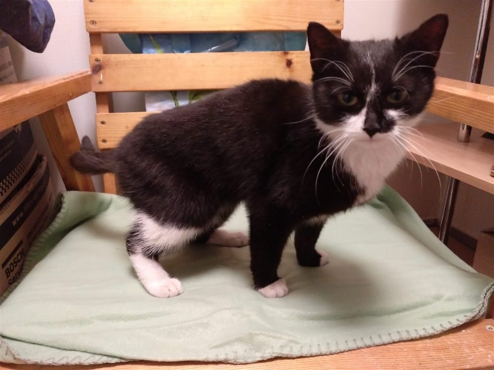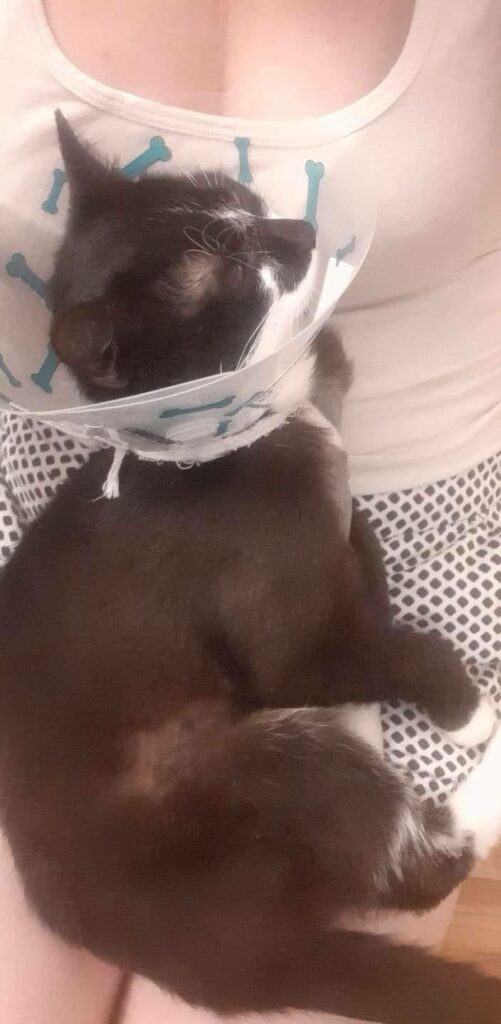 Trafił do domu tymczasowego, gdzie opiekunka dostrzegła niepokojący objaw: nasilającą się duszność. Z każdym tygodniem, jego oddech był coraz cięższy, więc zdecydowaliśmy się zabrać go na prześwietlenie. Niestety, potwierdziły się najgorsze przypuszczenia – Vaderek ma rozległą przepuklinę przepony, która powoduje, że z każdym dniem coraz ciężej mu oddychać. Lekarze początkowo odradzili operację, ze względu na ogromne ryzyko, ale wkrótce po wizycie, jego opiekunka zaczęła obserwować, jak usilnie stara się złapać powietrze pyszczkiem. Kotek musiał być pilnie operowany, gdyż każdy dzień zwłoki, to dla niego męczarnia. Operacja była bardzo trudna i kosztowna, ale udana, duszności ustąpiły. Przed nim jeszcze trochę do pełnego zdrowia, ale najgorsze mamy już za sobą.
