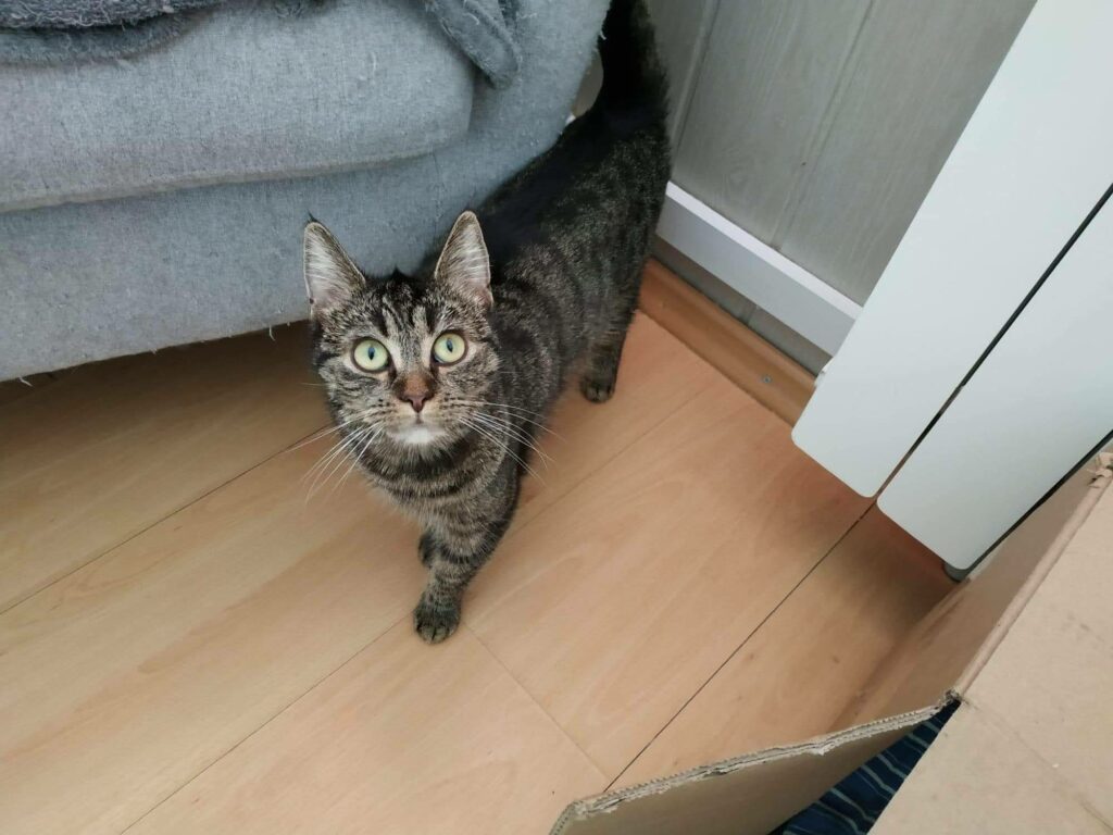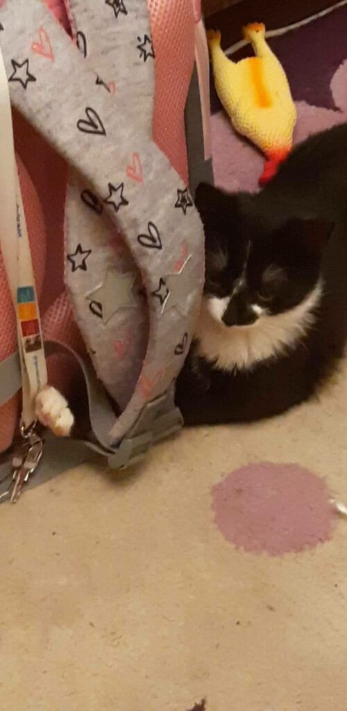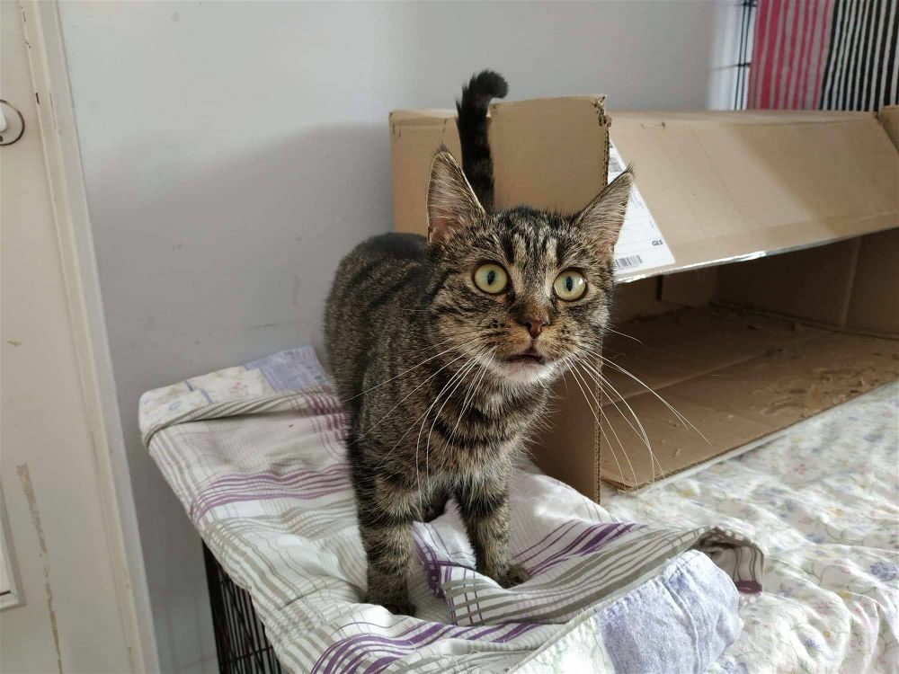 Zaskoczyło nas jak spokojnie reaguje na kennel i inne koty wkoło. Rzadko kiedy koty są zachwycone tuż po przybyciu do kociarni.